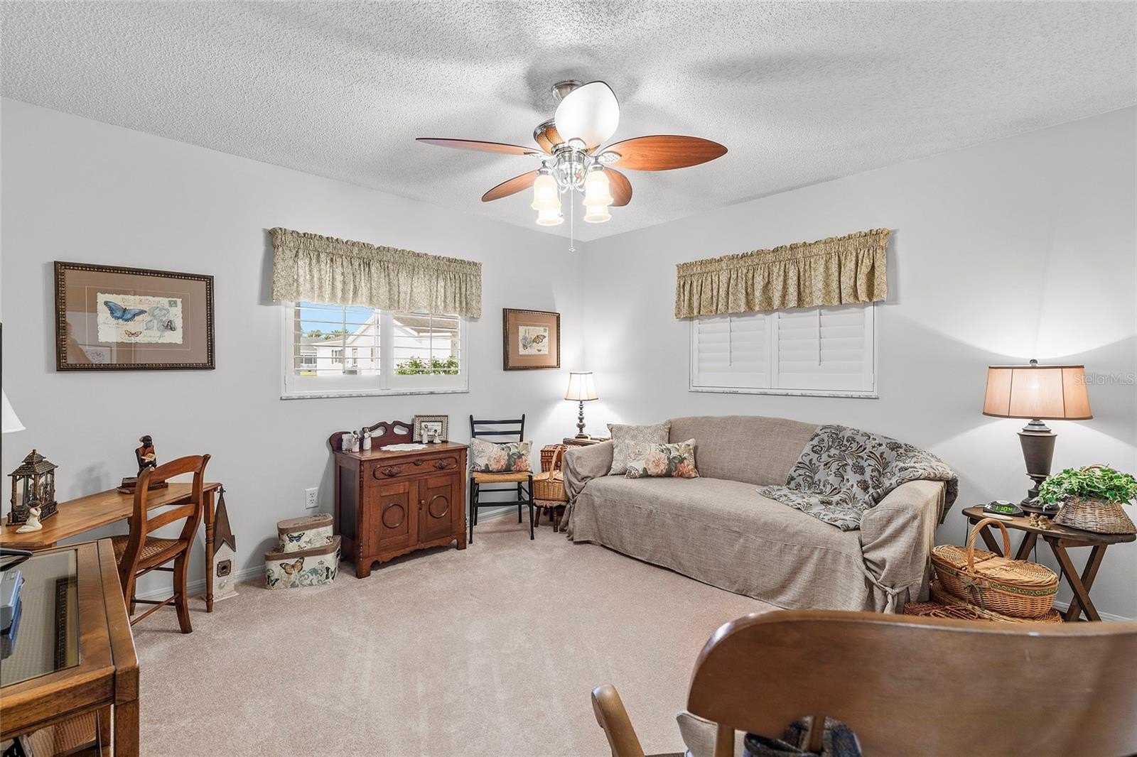 Located within the Premier 55+ Gated Golf Course Community of SPRUCE CREEK SOUTH, this exceptional home offers the perfect blend of relaxed Florida living and everyday convenience. Minutes from THE VILLAGES, FLORIDA off Hwy 441 / US 27, the property is ideally positioned near fine dining, upscale shopping, top rated hospitals, and provides easy access to I-75 for travel and day trips. The home is being sold FULLY FURNISHED allowing you to settle in and start enjoying the lifestyle immediately. This inviting 3 Bedroom, 2 Bath Holly Floor plan sits on a desirable corner lot and welcomes you with soaring ceilings in the living and dining areas that create a bright, OPEN atmosphere. LAMINATE Flooring runs through the main living spaces and the primary bedroom, while Carpeting adds comfort to the guest bedrooms and the Florida Room. UPDATED Cabinetry in both the Kitchen and Bathrooms enhances the home’s style and functionality, making everyday living both comfortable and efficient. One of the standout Features is the SPACIOUS 22 x 14 FLORIDA ROOM under air, complete with a vaulted ceiling, offering an ideal space for entertaining guests or unwinding with a peaceful morning coffee. Just beyond, a SCREENED PATIO provides a quiet outdoor escape, and the adjacent 9 x 25 STORAGE ROOM opens the door to endless possibilities, whether used as a hobby space, studio, workshop, or private retreat. The exterior is just as impressive, with attractive landscaping that adds curb appeal and a practical layout that includes a TWO CAR Garage plus a separate GOLF CART GARAGE with convenient side entry and utility door. Major systems have been thoughtfully maintained, with the HVAC replaced in 2020 and the water heater in 2012, offering added peace of mind. Surrounded by resort-style amenities and a welcoming neighborhood atmosphere, this home delivers a lifestyle that feels like a year round vacation. Don’t miss your opportunity to enjoy comfort, convenience, and community in one of central Florida’s most desirable active adult communities...Spruce Creek South.
