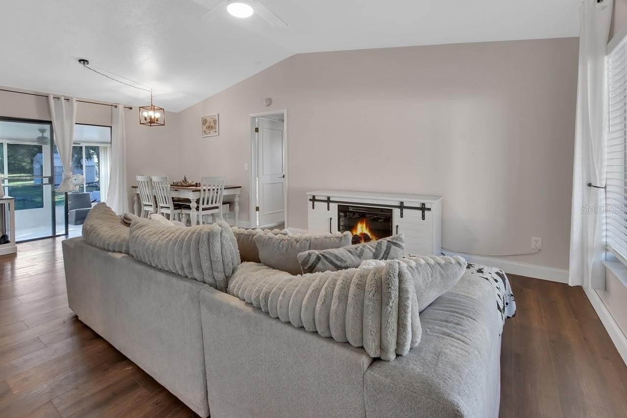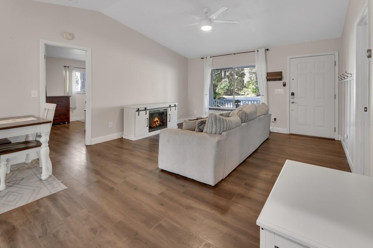 Updated and well-priced, this DeLand home offers modern finishes, custom details, and generous living space. Updates include - Both bathrooms completely redone, a new water heater, new kitchen appliances, and luxury vinyl flooring run throughout the home, with tile in the baths and porch. The living room features a vaulted ceiling, enhancing the open feel, while decorative trim on doors and walls adds a custom touch. A large, enclosed porch or Florida room provides versatile additional living space, perfect for relaxing or entertaining year-round.