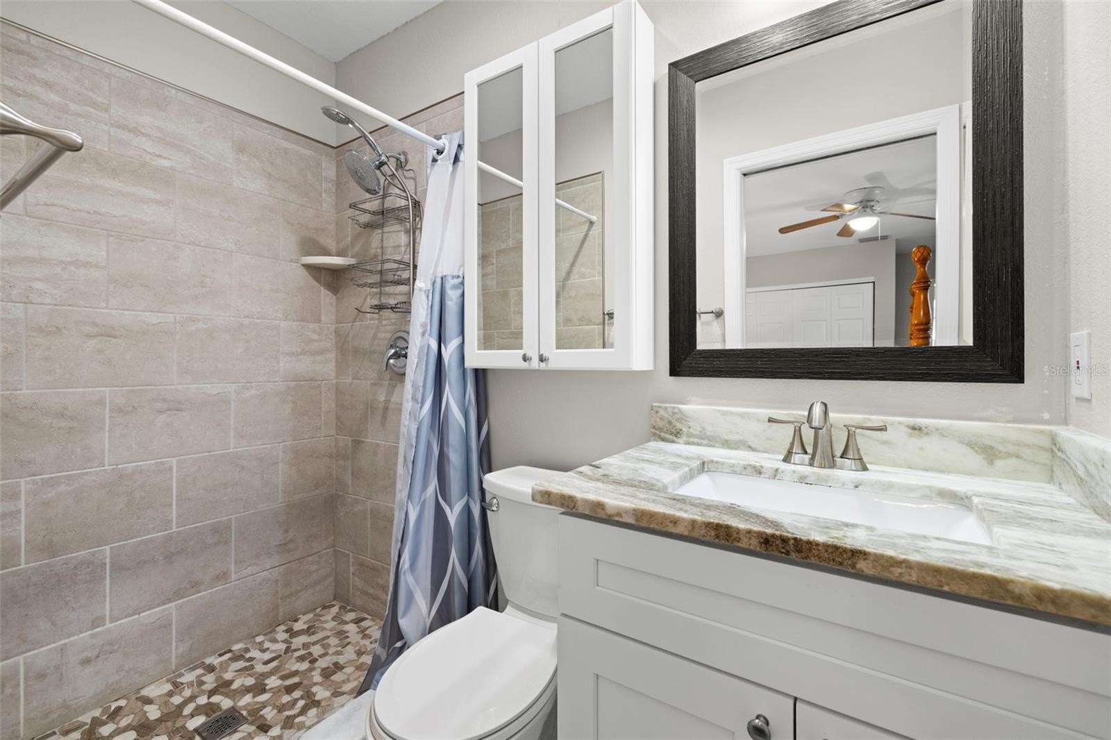 The kitchen blends function and warmth with granite countertops, custom wood cabinets with soft-close drawers, under-cabinet LED lighting, and stainless steel appliances. You can prep dinner while chatting with friends steps away, then move effortlessly out to the very large screened back patio, an actual outdoor living room, where you can host game nights, casual gatherings, or quiet mornings with coffee while enjoying the breeze and backyard privacy.