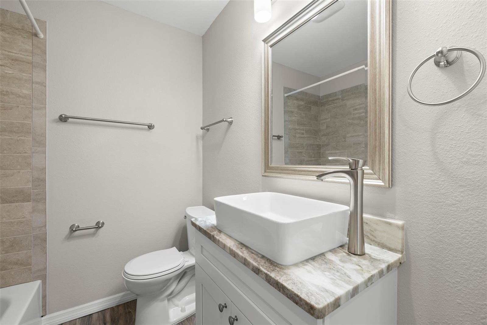 Step inside to a bright, open living area where light plays across luxury vinyl plank floors and neutral finishes, creating a clean, modern backdrop for your style. The split-bedroom layout places two bedrooms toward the front of the home and a private rear bedroom with an ensuite bath, offering flexible options for roommates, multi-person households, guests, or a calm retreat tucked away from the main living areas.