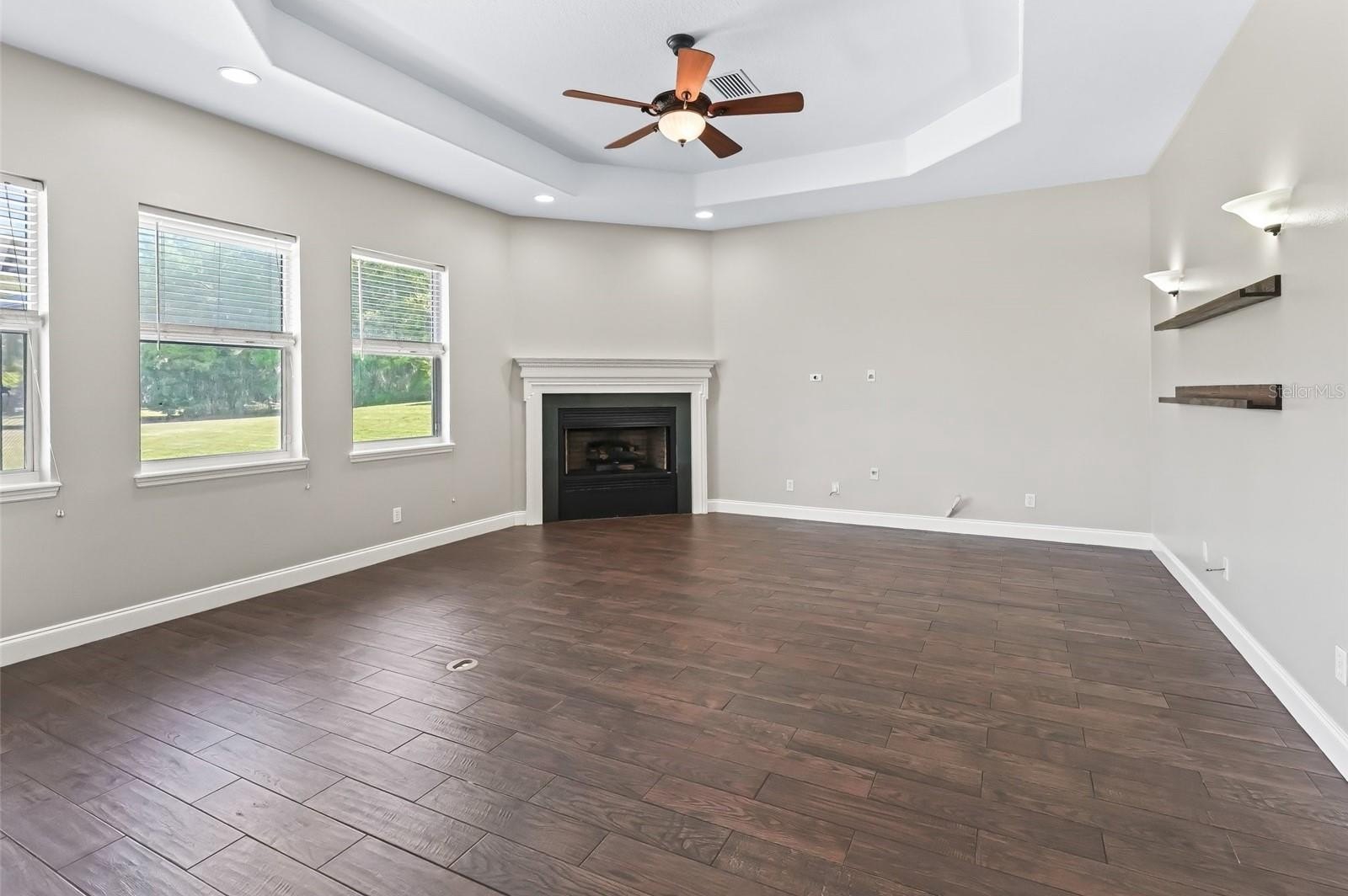 Step inside and be welcomed by soaring cathedral ceilings, elegant tray ceilings, and crown molding that add a sense of grandeur. The living area is anchored by a cozy gas fireplace, creating a warm, inviting space, all complemented by brand-new flooring throughout. The spacious kitchen effortlessly flows into the open living and dining areas, making this home ideal for both quiet family time and entertaining guests. Freshly painted inside and out, and equipped with a new roof, this home is ready for the next owners to enjoy.