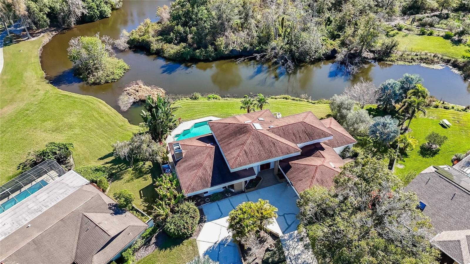 The SCREENED PORCH/FLORIDA ROOM Provides the Perfect ADDITIONAL LIVING SPACE, Beautifully Bringing the OUTDOORS IN and featuring MEXICAN TILE FLOORING and an inviting CORNER FIREPLACE—IDEAL for YEAR-ROUND ENJOYMENT. Outside, the POOL and SPA invite relaxation, while a MAIN-LEVEL DECK Built-in seating and multiple second-floor balcony decks allow endless opportunities to enjoy the peaceful, picturesque surroundings. With a grand floorplan, Hardwood floors, Abundant Natural Light, Multiple Indoor and Outdoor Living spaces, and an unparalleled estate lot, this home is truly ONE OF A KIND. Ideally located in Carrollwood Village, just minutes from Shopping, Parks, Major Roadways, Downtown Tampa, and Tampa International Airport, this EXCEPTIONAL PROPERTY offers both CONVENIENCE and PRESTIGE. Whoever purchases this residence will undoubtedly become the lucky new owner of a Truly Rare and Timeless Estate.