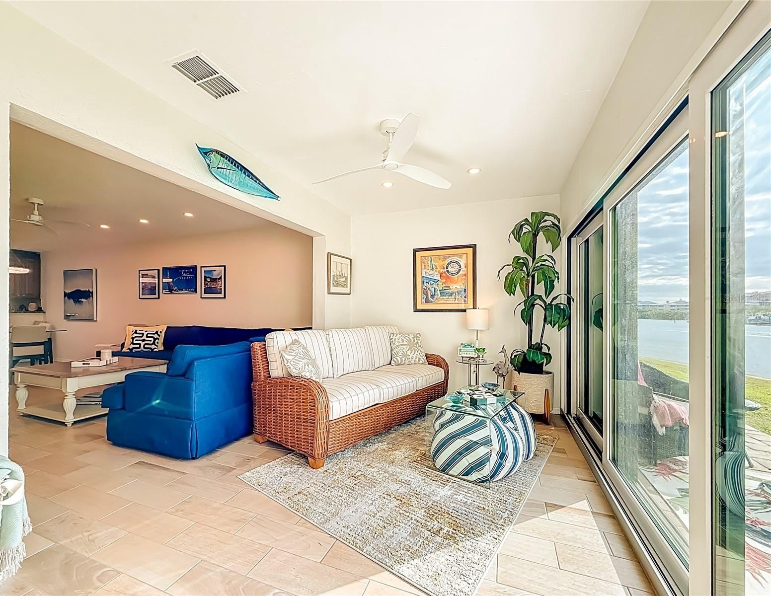 This beautifully maintained, move-in-ready, fully furnished first-floor waterfront condo is truly a must-see! Featuring an open floor plan with 2 bedrooms and 2 full bathrooms, this residence offers a rare and picturesque setting directly on the Intracoastal Waterway, with your own private back patio just steps from the water. The condo includes a designated covered carport and additional storage conveniently located outside your front door. Inside, the spacious living and dining area is tastefully decorated and designed for comfort and entertaining. The updated kitchen showcases solid wood cabinetry, granite countertops, and a charming wine or bistro nook near the patio—perfect for morning coffee or evening relaxation. The open-concept layout seamlessly connects the kitchen and living space, offering flexibility for gatherings of any size. The primary suite is generously sized, featuring two large closets (including a walk-in) and a spacious ensuite bathroom. From the bedroom, enjoy tranquil views of sailboats gliding by on the Intracoastal. The split-bedroom floor plan provides privacy, with a large secondary bedroom located adjacent to the second full bath—ideal for guests. Additional highlights include an oversized in-unit laundry room, and a bright Florida room where you can unwind while watching dolphins, boats, and stunning sunsets over the water. The private back patio serves as your own peaceful retreat—perfect for sipping your favorite beverage and enjoying the breathtaking waterfront scenery. This home offers peace of mind with an elevated grade of over 8 feet (X500 flood zone) and no history of storm impact. This bright and contemporary 1,400 Sq. Ft. condominium is located in the desirable, resort-style Imperial Point community. Residents enjoy access to two nearby pools, including your private clubhouse and pool area for condo residence only just north of the unit, and another Imperial Point community pool with additional amenities just a short walk that includes: an Olympic-size pool, fitness center (w/24 hour access), fishing dock and boat ramp, clubhouse, game and billiards rooms, pickleball and bocce courts, shuffleboard, and more—all overlooking the pristine Intracoastal Waterway. Whether you’re barbecuing, relaxing poolside, or enjoying the sunset, every space invites you to unwind. Recent updates include new tile flooring throughout, a new A/C system and hot water heater (2025), dual-pane hurricane-rated sliding doors and windows, updated overhead lighting, and solid wood interior doors. The condo is being sold fully furnished with all appliances included, allowing you to move right in and immediately enjoy the Florida lifestyle. The monthly association fee covers use of all Imperial Point amenities, internet, cable/Wi-Fi, water, sewer, trash, exterior building maintenance, landscaping, and pool maintenance. Ideally located just minutes from Gulf beaches, shopping, dining, and local airports, this exceptional waterfront home offers a rare opportunity to live with the Intracoastal Waterway right in your backyard.