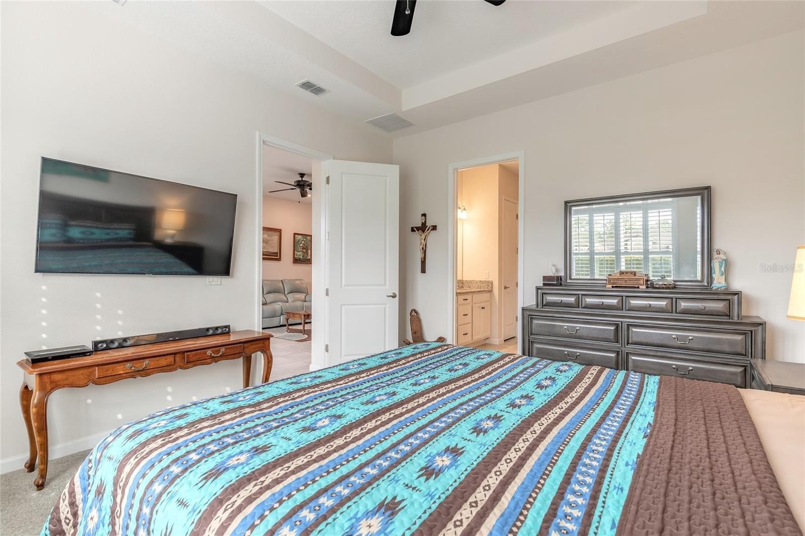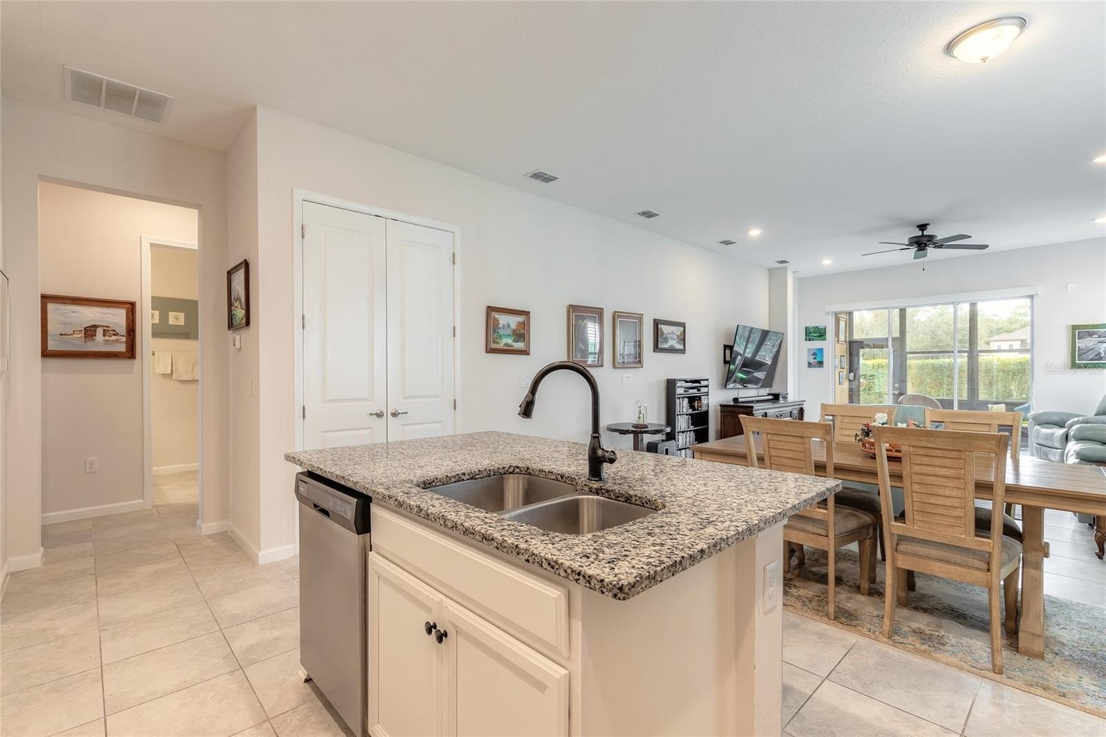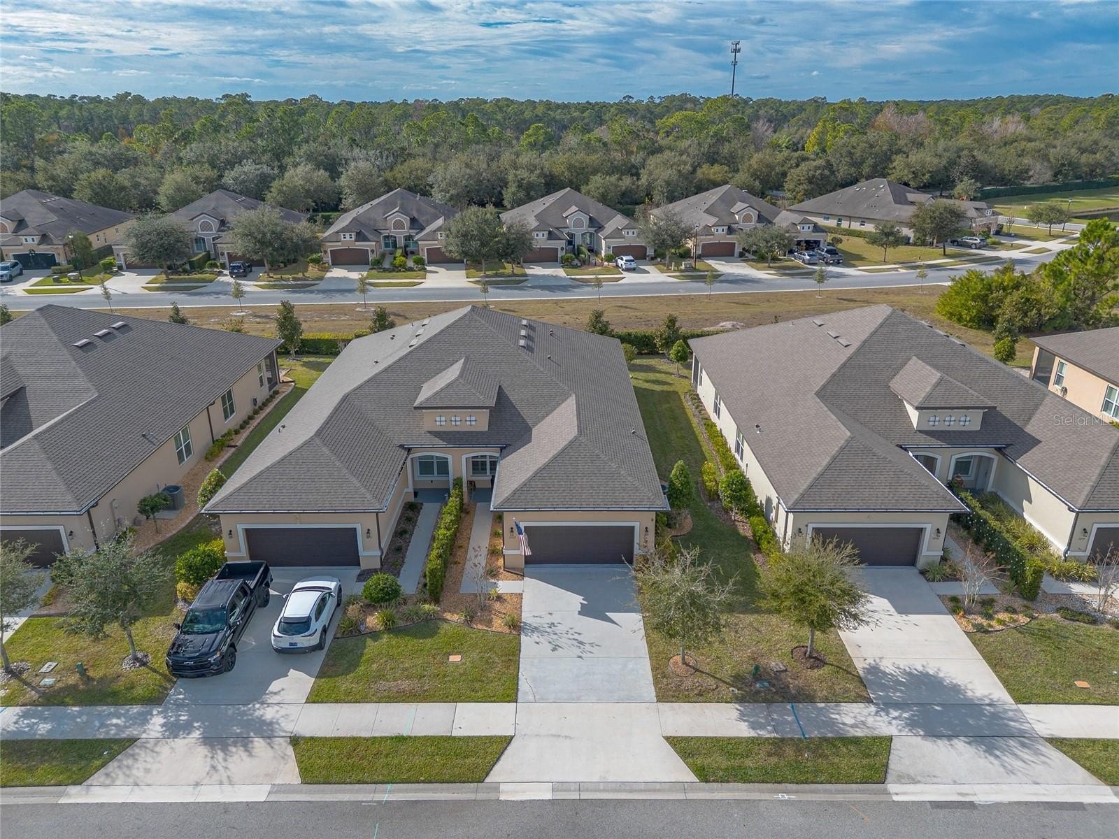 Welcome to this exceptionally maintained, newer construction 2 bedroom, 2 bathroom attached single family residence. Perfectly situated in the highly sought after community of Halifax Plantation, it offers the ideal blend of luxury finishes, functional design, and a prime location. Experience effortless living with an open plan design where the kitchen, dining area, and living room flow seamlessly together. The heart of the home boasts stunning white cabinetry, elegant granite countertops, stainless steel appliances, and glass tile backsplash. Modern tile flooring runs throughout the main areas, complemented by plush carpet in the generously sized bedrooms. Both the kitchen and bathrooms feature beautiful granite countertops. A dedicated flex space/office provides a versatile spot for your needs. The primary bedroom is a true sanctuary, featuring a stylish tray ceiling, a huge walk in closet, and a spa like ensuite bathroom with an oversized shower and double vanities. Entertain or relax year round in the glass enclosed and tiled back patio, which includes a mini split AC system for ultimate comfort, accessible via sliders from the living room. Additional premium details include plantation shutters throughout, an inside laundry room, abundant storage closets, and a pristine epoxy garage floor. Located near everything Halifax Plantation has to offer, this turn key modern masterpiece is waiting for you. Schedule your private showing today!