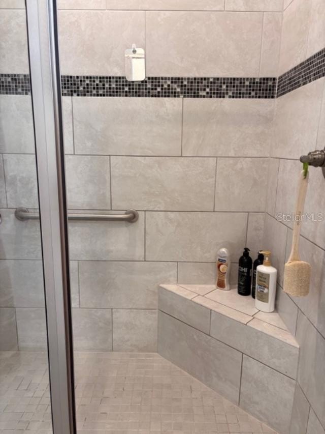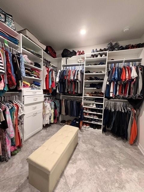 The owner’s suite features an accessible ensuite bath with walk-in shower and bench, dual vanities, and a professionally organized walk-in closet with direct access to the huge laundry room—complete with sink, folding area, and abundant storage. Washer and dryer are included.