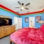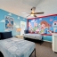 Themed living takes center stage with 7 immersive themes throughout the home. The two primary suites feature How to Train Your Dragon and Avengers themes. The main-level bedroom is Star Wars, while the upstairs bedrooms are Toy Story and Mickey Mouse. Sleeping arrangements include 3 king beds and 4 twin beds. The garage is transformed into a Harry Potter–themed game room with foosball, air hockey, and a pool table, while the dining room brings the fun with a Super Nintendo World theme.
