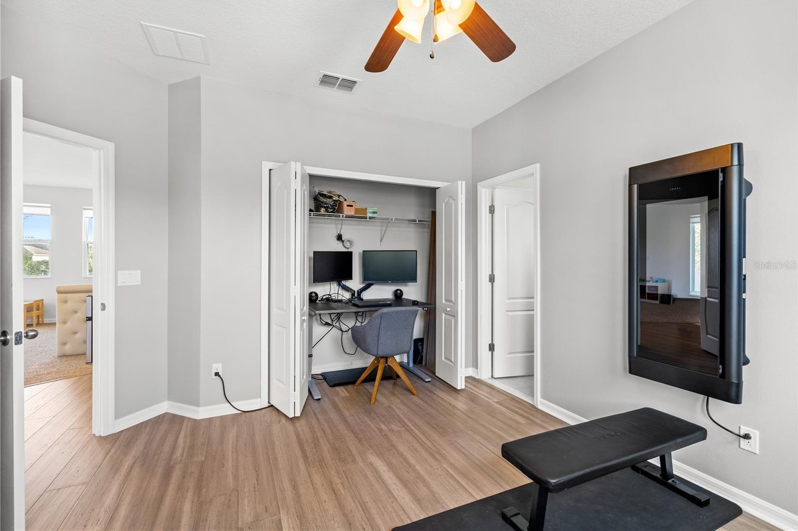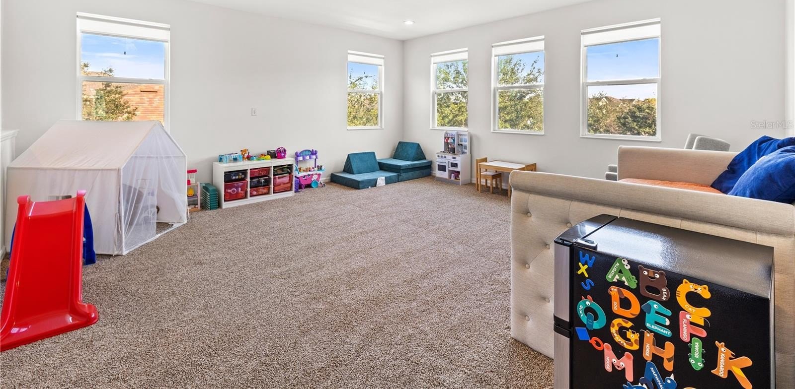 Recent updates elevate the space, including fresh interior paint (2025), new bamboo flooring on the stairs and throughout the second floor, stylish accent walls, and upgraded modern handrails. Upstairs, all four bedrooms are thoughtfully arranged alongside a generous loft. The primary suite is a true retreat, offering an expansive layout and dual closets for ample storage.