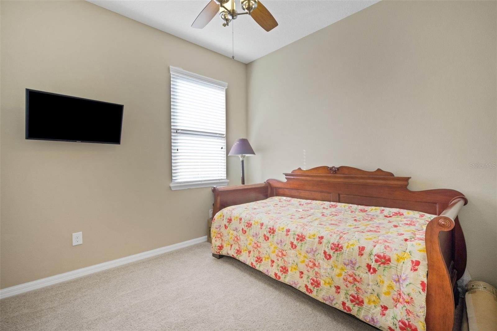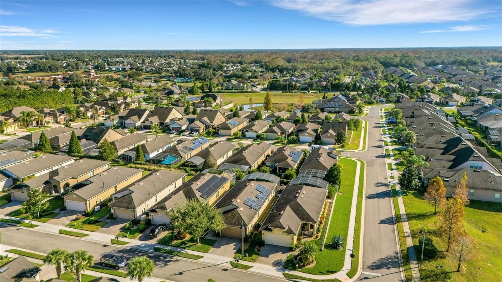 Located in the desirable 55+ community of Del Webb Orlando this beautiful Taft Street floor plan has 2 bedrooms, 2 bathrooms, a den and a sunroom and located just a short walk from the community clubhouse and amenities. Enter this home through the screened front porch and into the comfortable great room. The adjacent kitchen features a large island, granite countertops, upgraded cabinets with pull-outs and backsplash. The primary bedroom is located in the rear of the home for privacy. The primary bathroom suite which has two sinks, and tiled walk-in shower. A large walk-in closet in included the primary suite. The laundry room is conveniently located adjacent to the primary bedroom. The guest bedroom and guest bathroom are located near the front of the home for privacy. Prior to exiting the home onto the lanai is a cozy sunroom perfect bonus space for a hobby room, music room or a great space for relaxing. The large screened lanai is the showcase of the backyard and the elevation offers great privacy. The garage features epoxy floors, overhead storage racks, and and stairs/ladder for attic access. Additional upgrades include leased solar for affordable electric bills and updated lighting. The $425 semi-annual HOA fee provides 24x7 staffed security gate and master association-owned private road maintenance. Adjacent to recently renovated 18-hole White Heron Golf Club. The $282 monthly Del Webb HOA fee includes exclusive access to resident-owned 30,000+ SF Montecito clubhouse and amenities. DEL WEBB ORLANDO is a 55+ community with a tavern, indoor walking track, fitness center, indoor and outdoor pools and spas with locker rooms and showers, billiards, ping pong, craft room, and a ballroom for special events. Outdoor activities include pickleball, tennis, bocce, basketball, shuffleboard, community gardening center, an outdoor amphitheater, large brick fire pit and large screened-in gazebo over the water. Miles of biking and walking trails within Ridgewood Lakes gated community. Located conveniently to shopping at Posner Park (4 miles), Disney World, Universal Studios, Orlando & Central FL entertainment nearby. Easy access to I-4, medical facilities, airports & Sunrail Station. Advent Health hospital is 3 miles away.