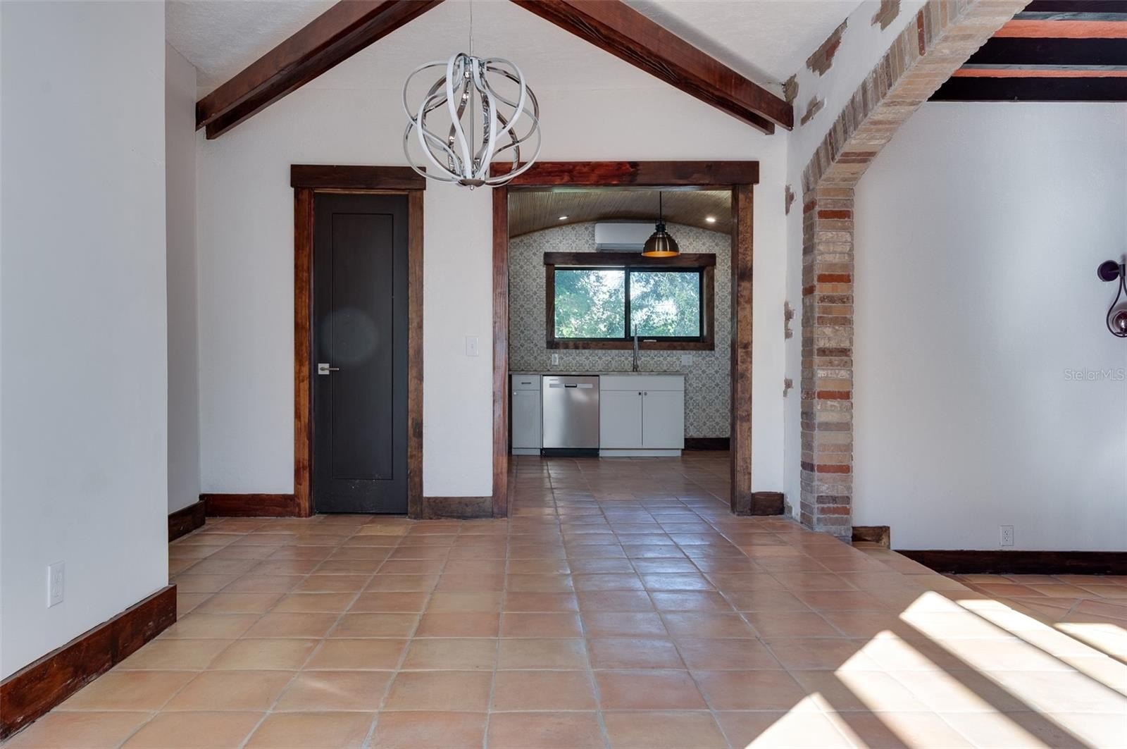 One or more photo(s) has been virtually staged. Discover an extraordinary blend of timeless Spanish architecture and refined modern living in this elegant St. Petersburg estate. A statement of sophistication, the home showcases its heritage with terracotta hued roof tiles, smooth stucco, wrought-iron detailing, and lush tropical landscaping that evoke the feel of a serene European retreat. Inside, warm tones and thoughtful details create an inviting ambiance. Hand-laid Spanish tiles guide you through the open-concept layout, while exposed wood beams showcase timeless craftsmanship. Large windows providing generous natural light set the stage for effortless luxury, enhancing the character and beauty in each room. Every detail has been curated to elevate the home’s character and create a seamless flow throughout.