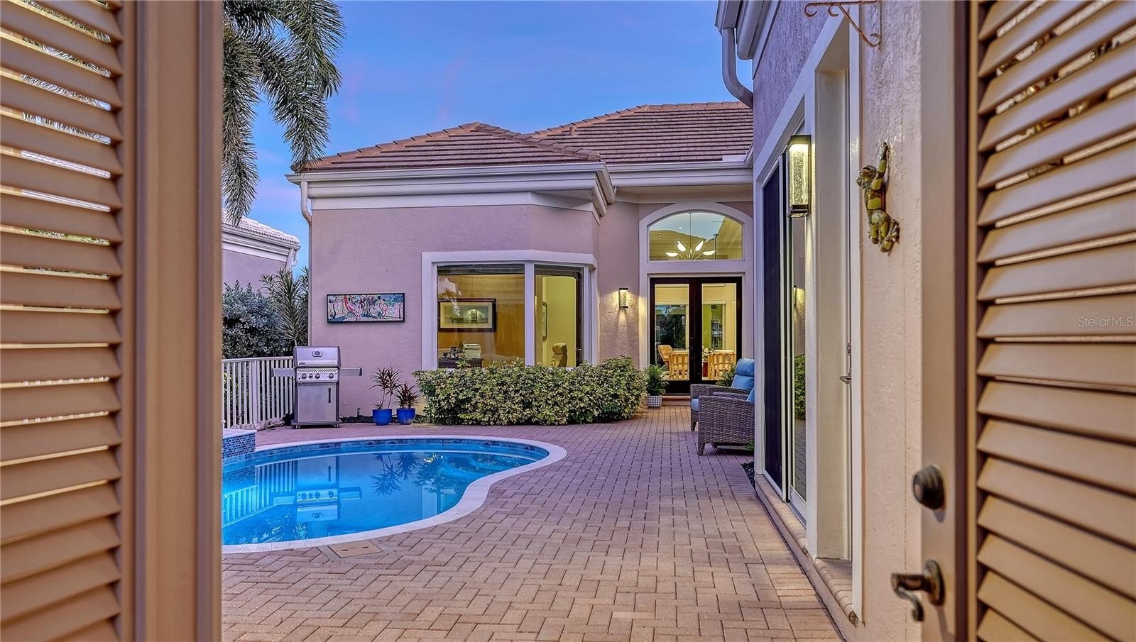 Situated within the gated Queens Harbour enclave of Bay Isles, this thoughtfully updated four-bedroom courtyard residence offers a refined blend of privacy, comfort, and waterfront living on Longboat Key. Designed around a lush central courtyard, the home creates an effortless indoor-outdoor flow anchored by a resurfaced swimming pool and new paver deck—an inviting retreat for everyday living or entertaining.