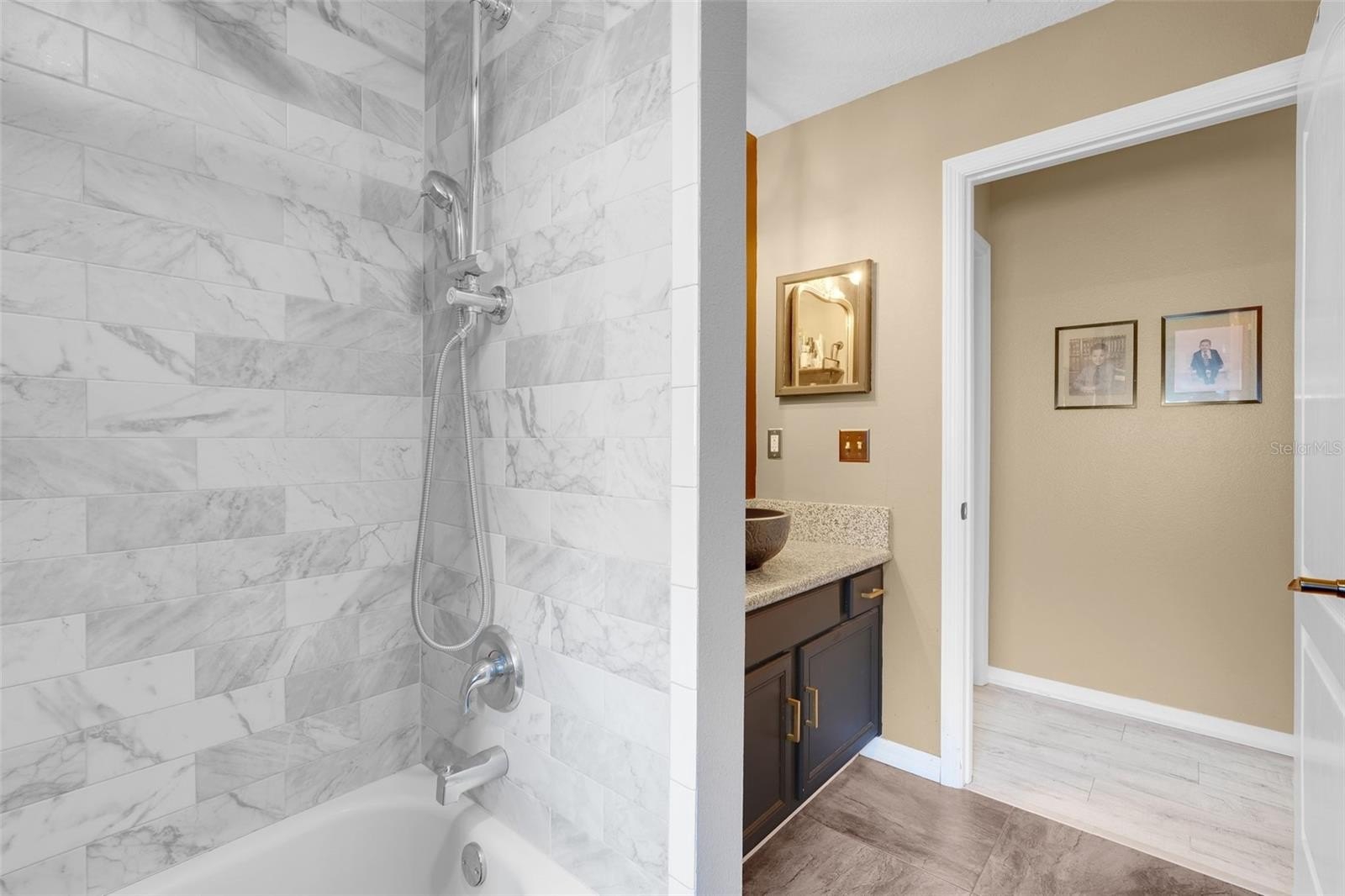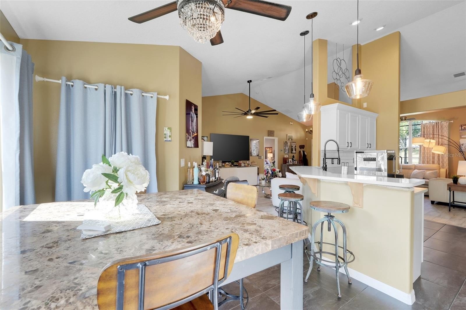 One or more photo(s) has been virtually staged. Your search for an updated Florida home, in an unbeatable Clermont location, is over! This home brings single story living to life with the Stetson Model open floor plan and split bedroom layout. The kitchen has been thoughtfully redesigned with white cabinetry topped with crown molding, stone counters, designer faucet, and stainless steel appliances to include a brand new GE refrigerator. Even the stylish black washer & dryer set conveys! The primary bath brings spa-like vibes with soothing tile colors, dual vessel sinks, a perfectly tucked away corner garden tub, and a fully tiled shower. There's less stress in knowing where your "big ticket" items stand: ROOF 2022, HVAC 2019, EXT PAINT 2019, WH 2019. You will enjoy the perks of having a WATER SOFTENER, and if you happen to have an electric car- there's a LEVITON CHARGER waiting for you in the garage. This gem sits on a meticulously maintained CORNER LOT inside the coveted and gated community of College Park, which offers a playground/park, a low HOA, and an overall neighborhood feel. Just outside the gates is where you'll come to really appreciate the LOCATION. You can easily access the Hancock and South Lake Trail for walking, biking and rollerblading. The Orlando Health-South Lake Hospital is literally MINUTES from your new home, and if you love GOLFING- you can find that directly across the street from the front gates. There's an array of top-rated schools nearby, as well as Lake-Sumter State College. Come check out everything for yourself- you'll be so happy you did!