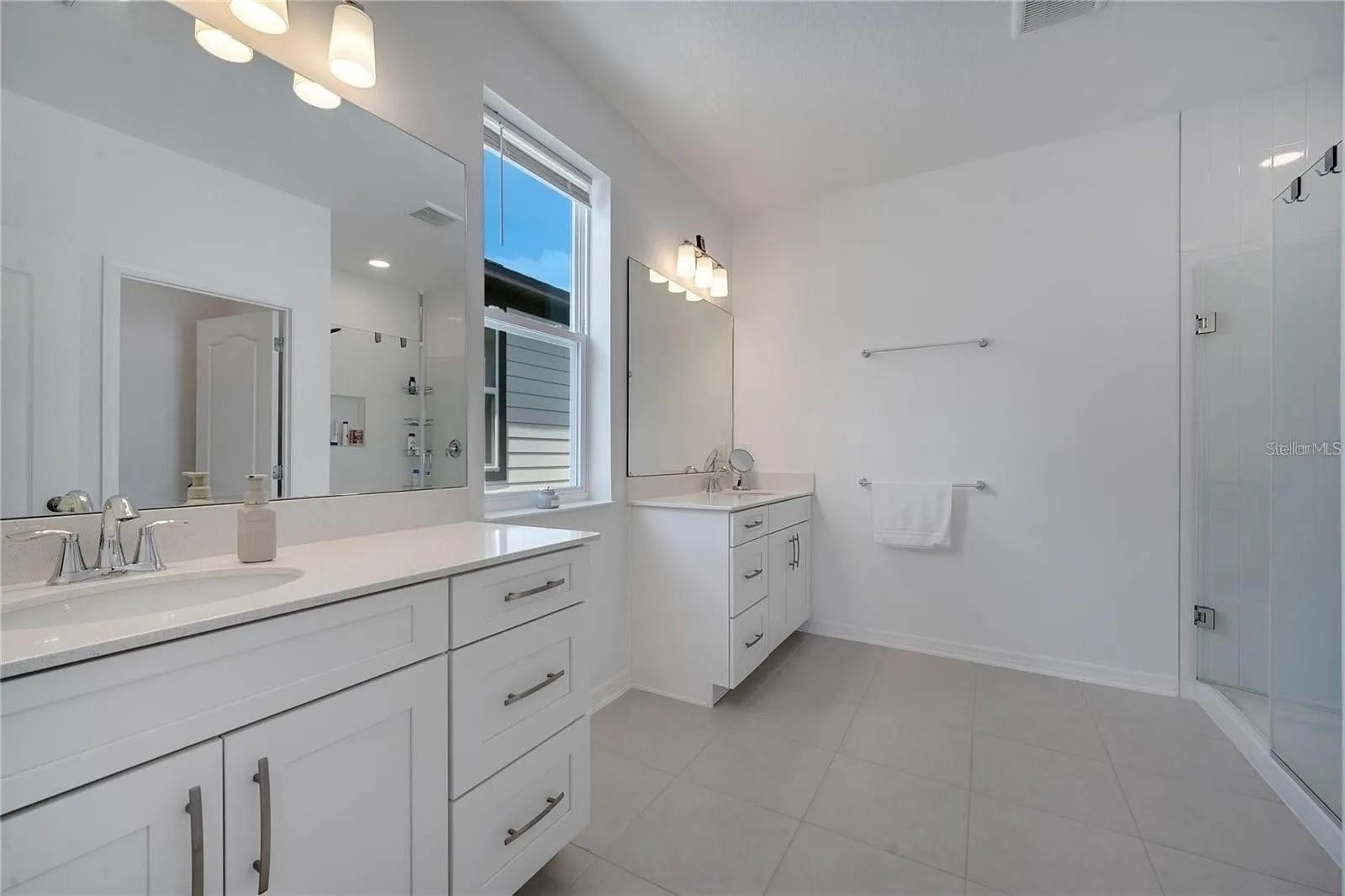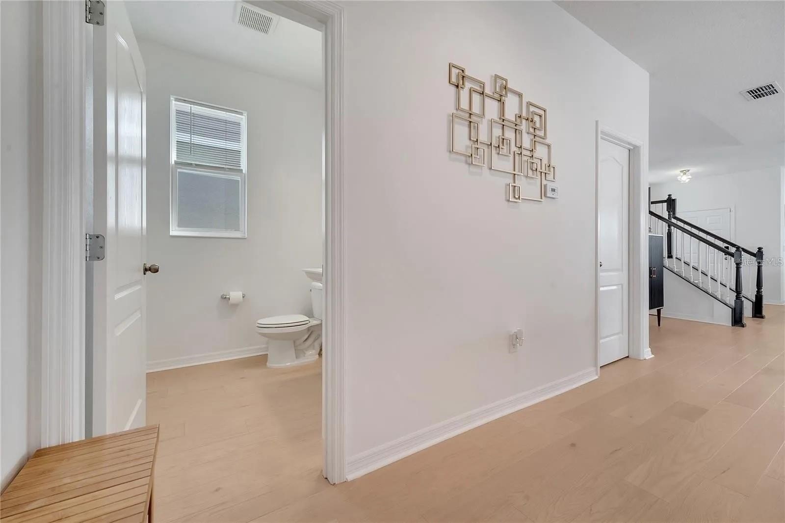Over $60,000 in builder upgrades enhance this modern 2023-built home featuring 3 bedrooms, 2.5 bathrooms, and a flexible loft space. The main level offers elegant wood flooring and a gas gourmet kitchen with quartz countertops, 42-inch cabinets, stainless steel appliances, double ovens, farmhouse sink, and walk-in pantry. A tankless gas water heater provides continuous hot water. All bedrooms and the laundry room are conveniently located upstairs in a split floor plan for added privacy. Located in Encore at Ovation in Winter Garden, just minutes from Walt Disney World and Highway 429, with access to community amenities including a clubhouse, fitness center, pool, and park. Lawn care included through the HOA for low-maintenance living.
