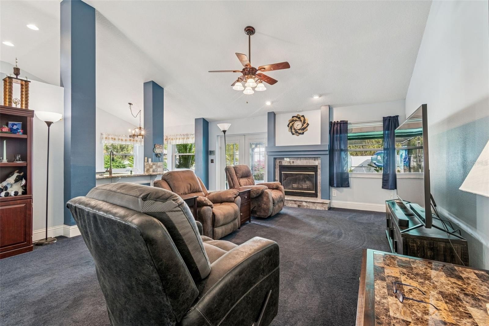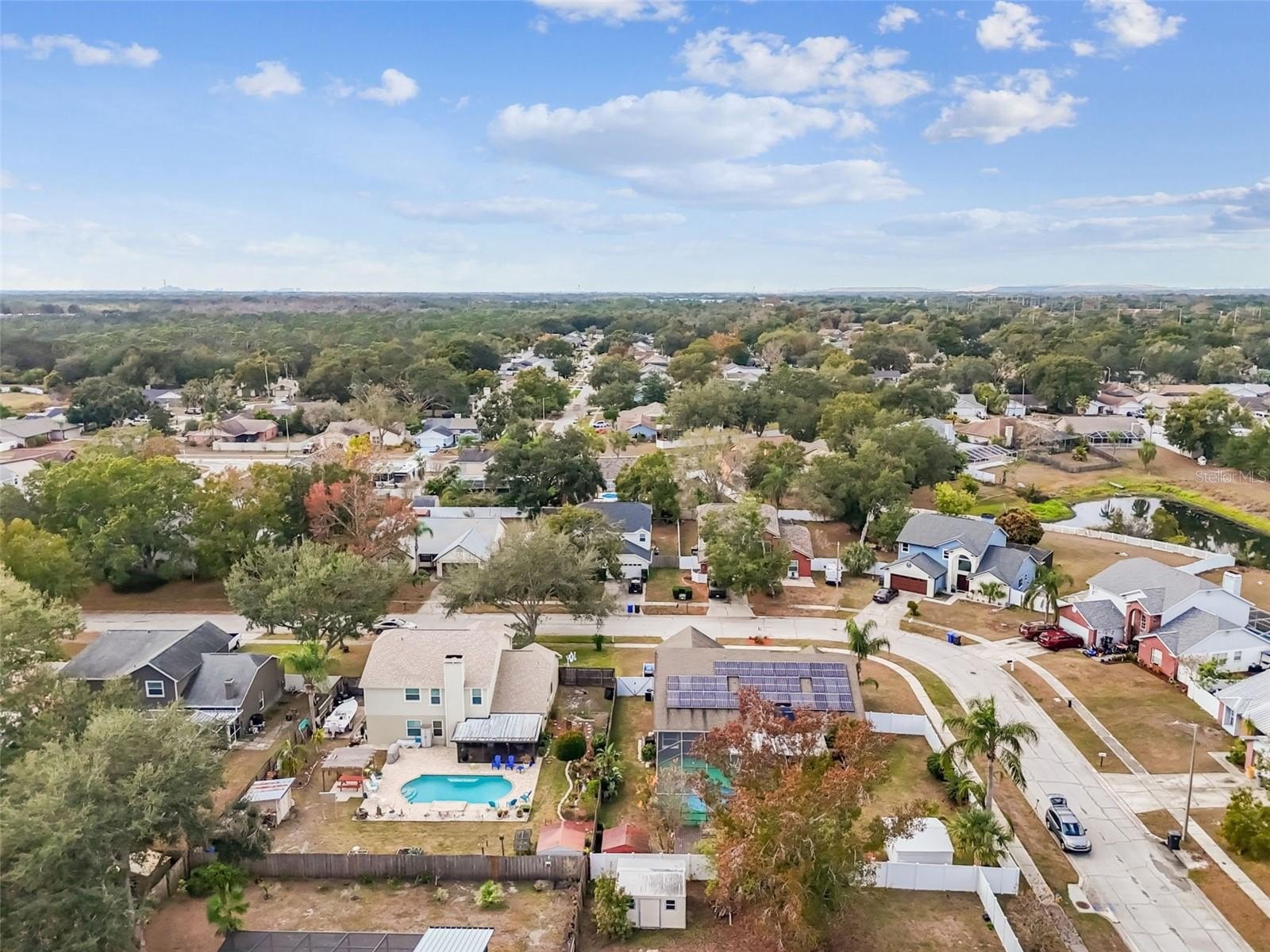 Welcome to this exceptional 4-bedroom, 2.5-bath solar powered home located on a generous 1/4+ acre corner lot in the desirable Boyette Springs community of Riverview. Spanning 2,242 square feet, this thoughtfully designed home with over $180k worth of recent upgrades, combines comfort, functionality, and resort-style outdoor living. Solar panels were installed in 2022 and are fully paid off, providing long-term energy efficiency and great utility bill savings (sellers only pay $35/month basic service charge). Inside, you’ll find an inviting eat-in kitchen that has been fully remodeled with shaker-style cabinetry, granite countertops, ceramic tile backsplash, ceramic wood look tile, and new appliances installed in 2025. The kitchen opens seamlessly to the main living area, anchored by a striking wood-burning fireplace with granite façade, and vaulted ceilings. Eight inch baseboards run throughout the home, adding a nice modern touch. French doors lead to an oversized covered patio, creating a perfect indoor-outdoor flow for entertaining. The primary bedroom suite is a true retreat, featuring a spa-inspired bathroom remodeled in 2023 with marble tile flooring, a heated walk-in tub with combination shower/jacuzzi, and a door leading out to the rear patio and pool. Dual quartz vanities complete the space. Three additional bedrooms share a guest bathroom with dual quartz sinks and handicapped accessible shower. Outdoor living is where this home truly shines. Enjoy Florida living year-round with a heated swimming pool and spa with rescreened pool cage, surrounded by new vinyl fencing for privacy. The pool deck has a thermal cool heat-reflective coating to reflect infrared radiation from the sun, reducing the deck's surface temperature for your feet (and your pet's feet)! The backyard also features a tiki lounge on a wooden deck, an insulated man cave that's perfect for home office use, and lush tropical landscaping including pineapple plants, a coconut tree, bougainvillea, and birds of paradise. Additional home highlights include a laundry room, vaulted ceilings throughout, a powder room, 2-car garage with epoxy-coated flooring, hurricane-rated windows (2019), a newer HVAC system installed in 2024, house replumbed (2022), travertine tile walkway, newer carpeting (2024), and abundant storage including a stand-up attic. No HOA or CDD fee is required. This unique property offers space, privacy, and upgrades rarely found together—conveniently located near shopping, dining, and major roadways. A must-see home for those seeking quality, value, and true Florida lifestyle living. Call to schedule your own private showing today!