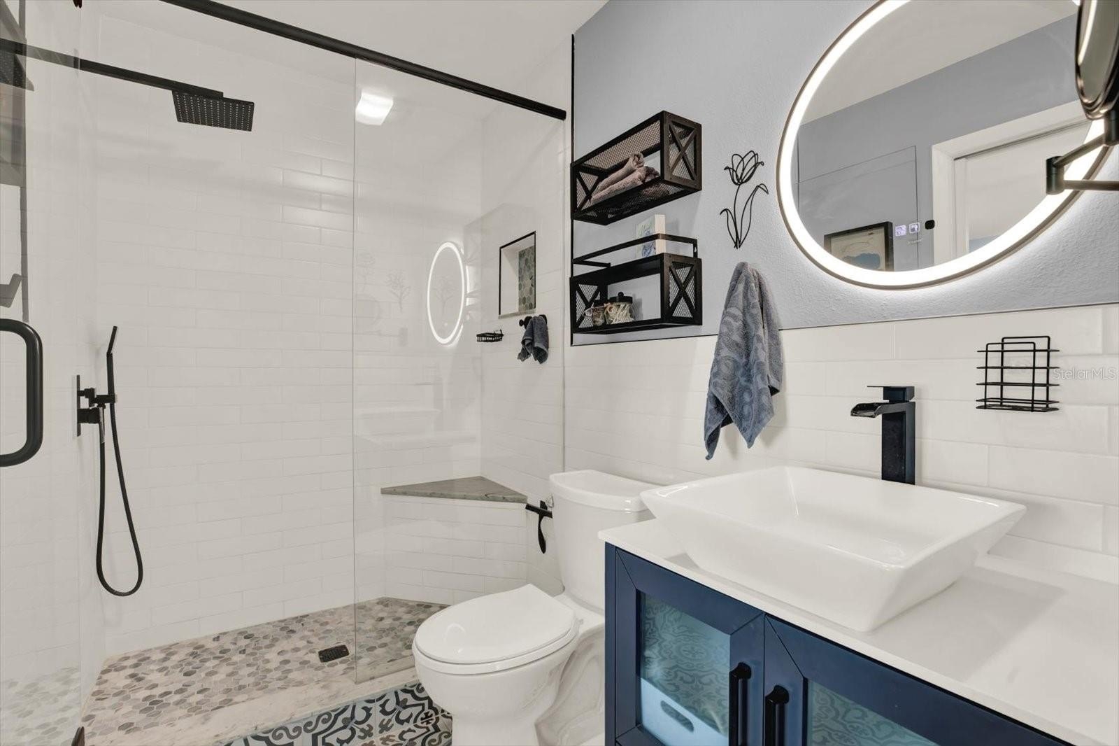 Welcome to West Shore Village, a sought-after gated community offering privacy, convenience, and low-maintenance Florida living. This beautifully updated one-bedroom, one-bathroom condo with a one-car garage is tucked away on a quiet cul-de-sac and features no shared walls, providing a rare sense of privacy and tranquility. Inside, the open-concept layout is filled with abundant natural light and showcases modern finishes throughout, including vinyl flooring installed in 2019 and a fully renovated kitchen (2021) with wall removal for a breakfast bar, sleek cabinetry, and stainless steel appliances. The spacious bedroom offers excellent storage, while the completely renovated bathroom (2025) delivers a fresh, contemporary feel. Additional upgrades include impact windows (2017), new HVAC system (2020), washer and dryer in-unit (2022), and a new garage door opener and hardware. Enjoy indoor-outdoor living with a screened-in patio, perfect for relaxing year-round. Enjoy some sun at the community pool or hitting some balls on the tennis court! Located minutes from shopping, dining, major highways, and some of the top-rated beaches in the country, this move-in-ready condo offers the perfect blend of comfort, security, and prime location.