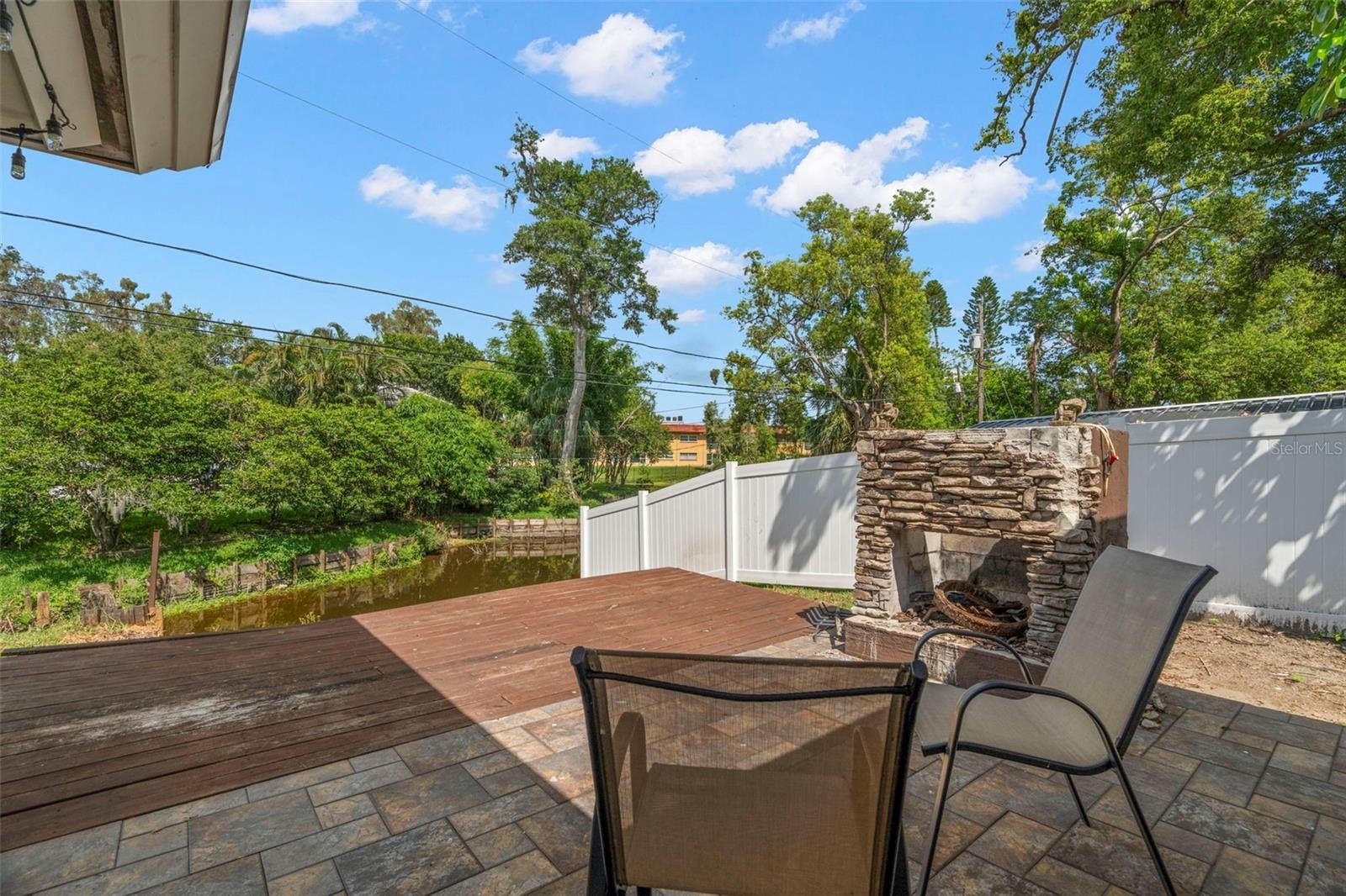 around the outdoor wood-burning fireplace, making s’mores while taking in the tranquil views of the backyard and