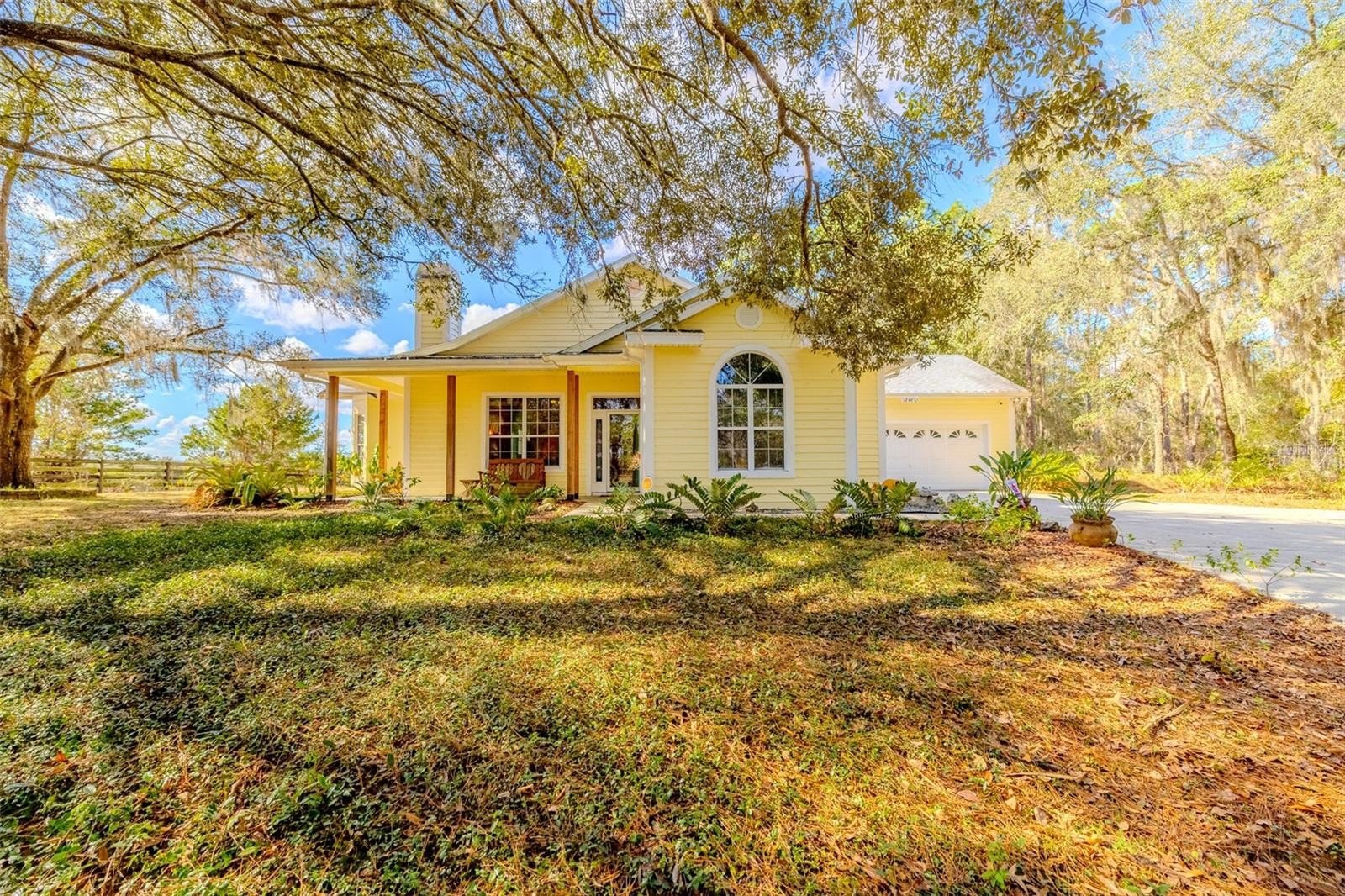 Rare opportunity to own in the established Oak Forest neighborhood. Location is close to the Hernando county line located off of US Hwy 41. Home is located on a cul-de-sac and situated on a large lot with no HOA. Custom built block home offering 3 bedrooms and 2 bathrooms, with a 2 car garage. As you walk up to the home you are greeted by the front wraparound patio that offers scenic views of the neighboring 60 acre pasture. Entering the home you will notice the custom tile work in the foyer and beautiful Hickory hardwood floors throughout the living areas and bedrooms. Living room has a wood burning fireplace. Living room and separate dining areas allow for plenty of space for entertaining guests. Kitchen offers island with breakfast bar and dual sinks. Ample cabinet space with slide out shelves on the bottom cabinets. Breakfast nook is perfect for quick meals. The enclosed sun room has large windows to enjoy the country view and is equipped with a mini split AC. For cooler nights warm yourself by the potbelly stove while making a hot beverage. Primary bedroom features walk in closet with custom shelving. Bedroom is oversized and allows access to the garage. Primary bathroom has been updated with new vanity, toilet, shower, jacuzzi tub and flooring. Secondary bedrooms have large closets and ceiling fans. Hall bathroom has also been updated with new vanity, toilet and shower. Washer and dryer hookups are in the garage. Water heater is new. Location provides easy access to major highways.