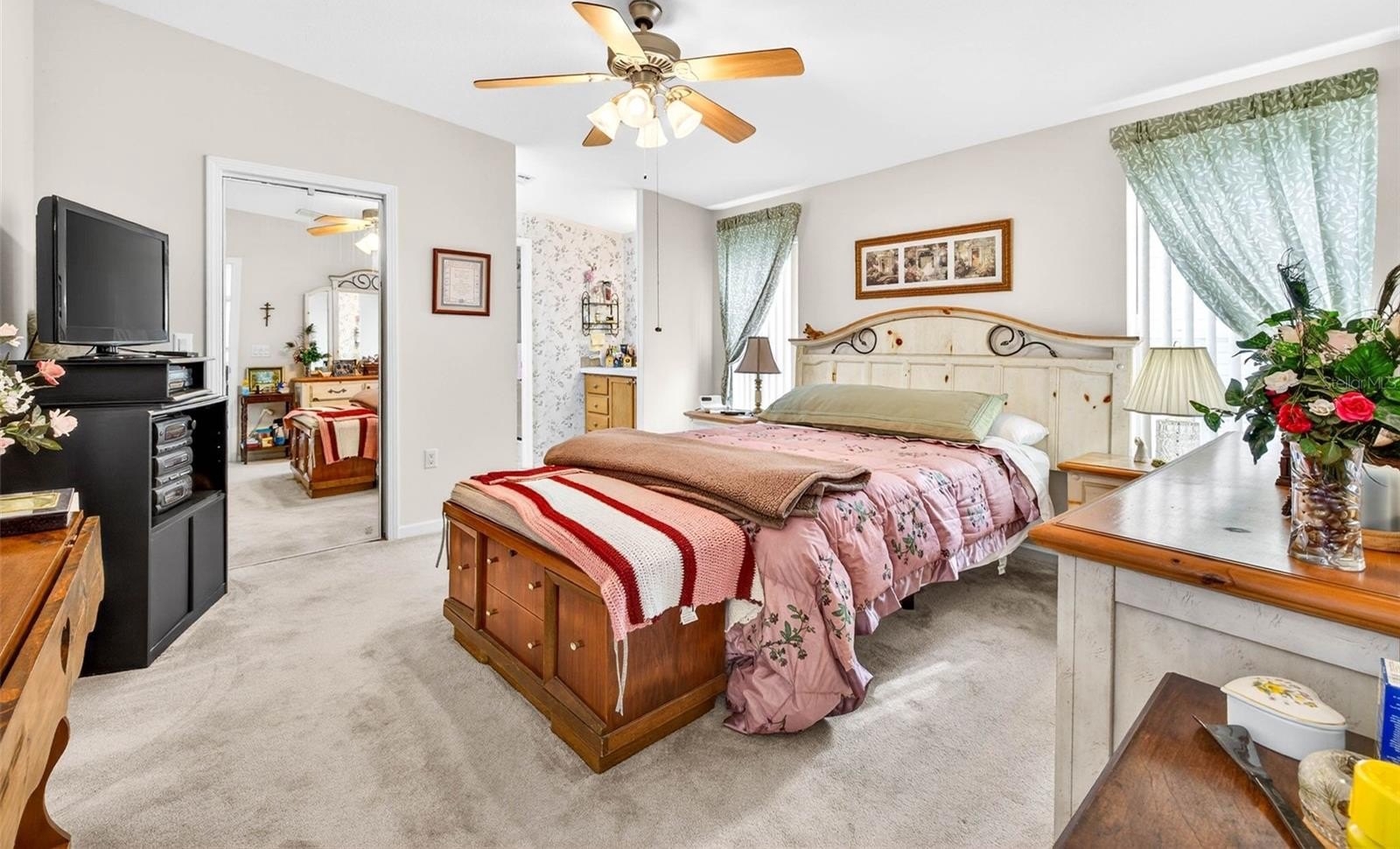 Enjoy a split floor plan for added privacy. The galley kitchen boasts an eat-in area and a large pantry, perfect for those who love to cook and entertain. Step out onto the beautiful screened front porch, ideal for relaxing mornings or unwinding at the end of the day.