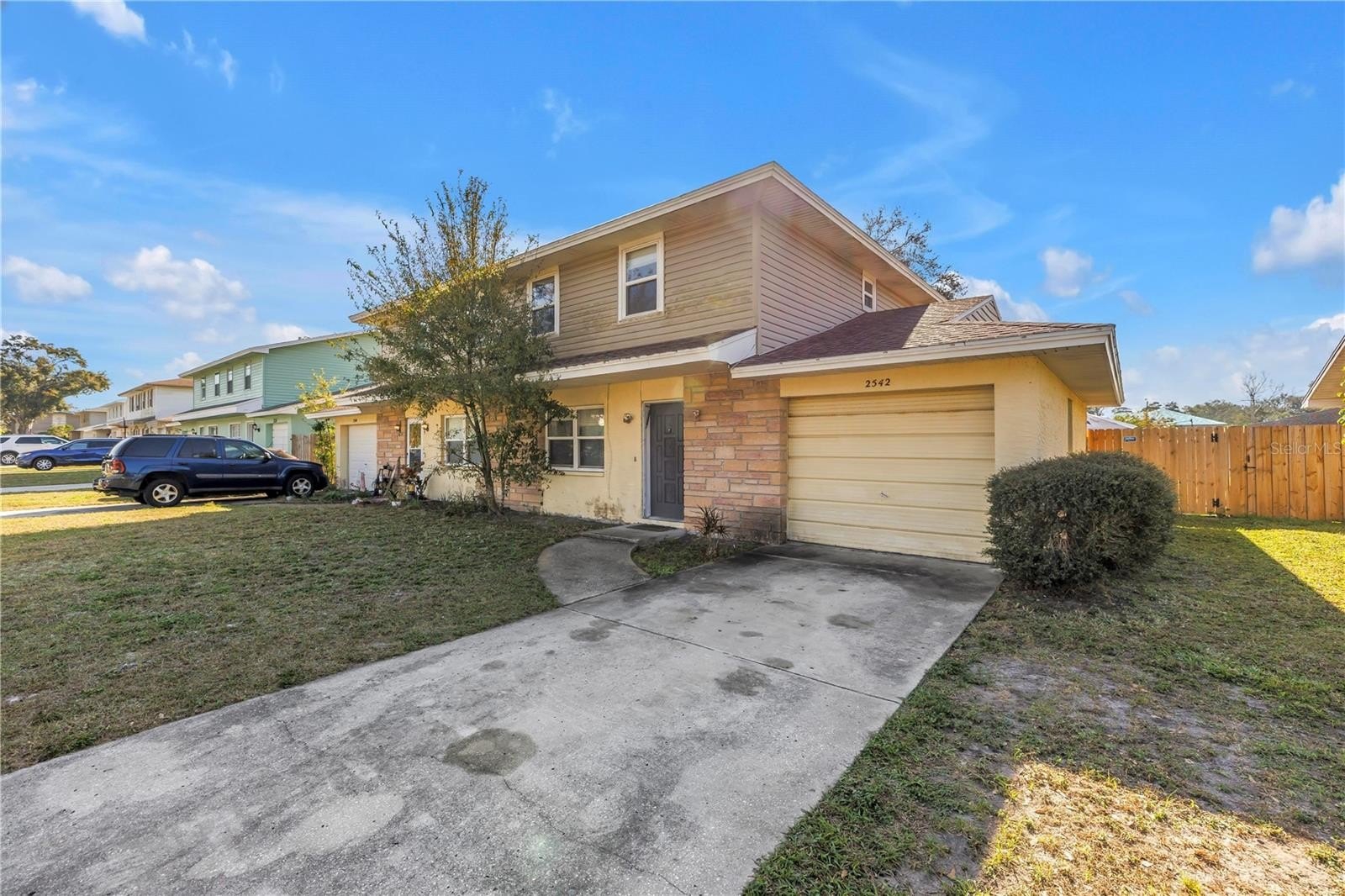 Exciting opportunity to own this attached single family home - 2 levels with 2 living spaces, large fenced backyard. Solid block construction both levels with stucco & siding. The first level offers front living room, powder / half bathroom, large kitchen with laundry closet which opens to a 2nd living space/family room with sliding doors to the backyard. The flooring is carpet and linoleum. Upstairs are three bedrooms + 1 hall bath upstairs with a tub shower and updated vanity & shower tile. Attached oversized garage (12'x29') is accessible from the kitchen and perfect for storage or parking. A brand new steel pedestrian door was just installed off the patio. Large fenced backyard is private and has patio space just outside the family room. Living room & upper level windows are double pane. HVAC 2019, water heater 2007. This is a single family attached dwelling (NOT a townhome or duplex). Seller is offering this as a potential package with MLS # TB8462876 - 2540 Wilson Ave; or can be sold separately. Currently leased / tenant occupied until August 2026.