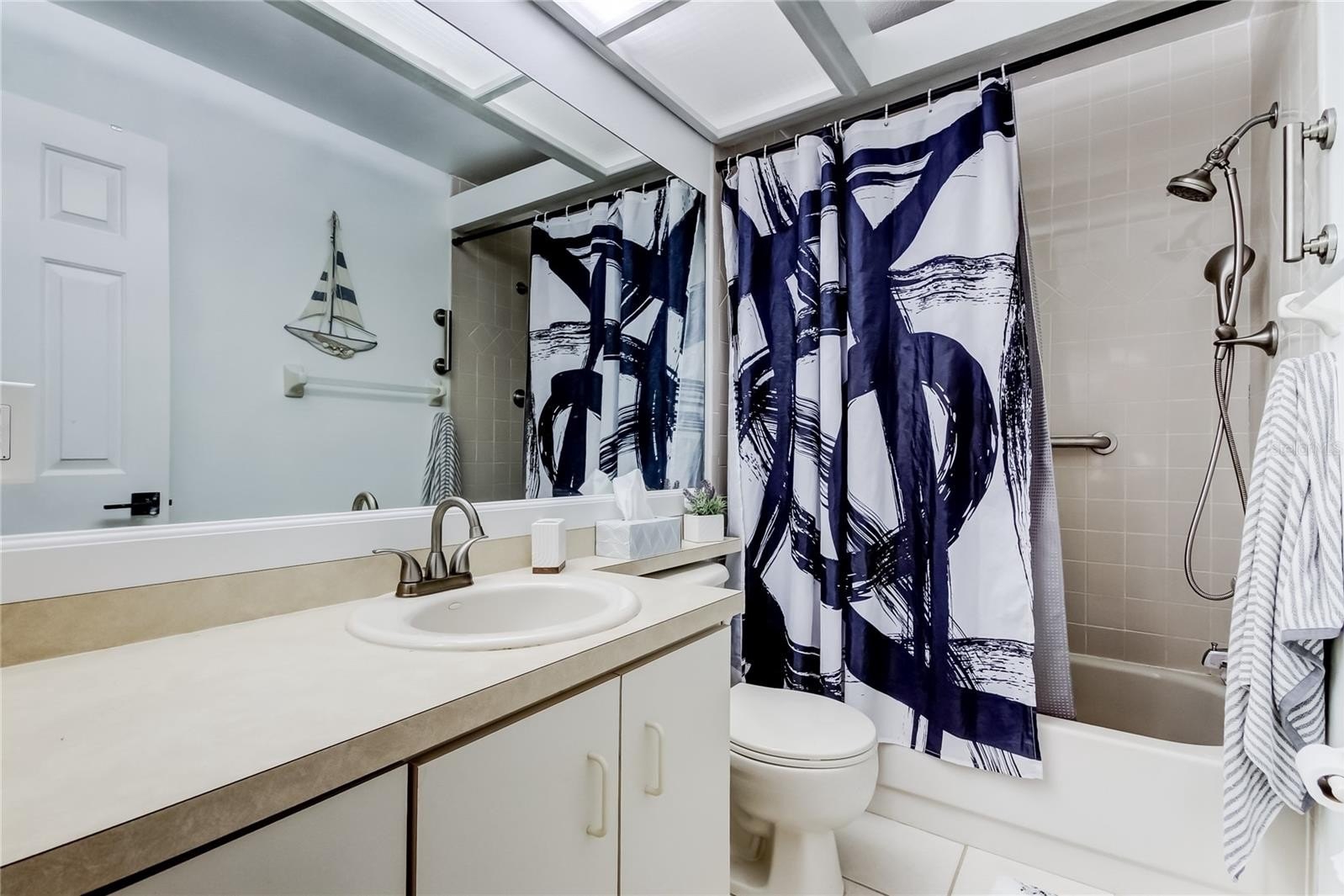 Airy 2-bedroom, 2-bath villa with vaulted ceilings and skylights, tucked toward the back of the community for privacy and quiet. The open living area creates an inviting space that flows seamlessly from the distinct yet accessible kitchen. The primary suite includes an en-suite bath and walk-in closet, while the second bedroom and bath are at the front, separated by the living space for a versatile layout. Enjoy a front nook, covered screened porch, and sweet private fenced courtyard. Recent 2024 updates include a new HVAC system, all piping, stove, and refrigerator. Community amenities feature a heated indoor pool, game room, fitness center, and clubhouse event space. HOA covers exterior maintenance, water, sewer, trash, cable, and internet. A private access road at the far side of the property offers residents easy access to the community. Just minutes from A.L. Anderson Park, Lake Tarpon, the Pinellas Trail, Gulf beaches, and the Tarpon Springs Sponge Docks, this sun-filled home combines modern updates with a flexible layout in a desirable, flood-zone-free location.