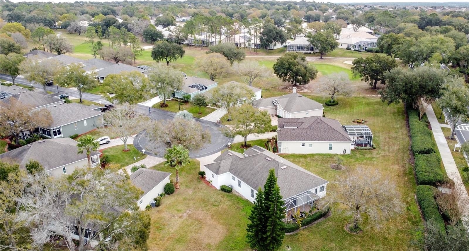 Rare St Regis model with 2.5 car garage located on large cul de sac lot with no rear neighbors. Very private with high hedges in back. Great curb appeal with the large paver brick drive and walkway. Home built in 2001 and has 1893 heated SF with 2 BD/ 2 BA, Den and a 2.5 car garage ( golf cart parking). Remodeled kitchen with real wood cabinetry, granite countertops, back splash and stainless steel appliances. New roof in Feb 2016 and HVAC changeout in Feb 2019. The den has a built in desk and extra built in cabinetry. Also a newer water heater. The great room has a solar tube that really lightens up the room. There is is laminate flooring in family room, den and kitchen.. In the back of the home is a large screen enclosure and covered lanai area also. Separate laundry room and washer & dryer remain. One of the larger lots in Kings Ridge. Kings Ridge is a 55 Plus gated golf community located in the rolling hills of Clermont, FL. Enjoy the Royal life style in the multi-million $ clubhouse with 3 heated pools, spas, tennis & pickle ball courts, billiards, shuffle board, shows, Bingo, cards and clubs galore. The monthly maintenance fees include: lawn maintenance including trimming of shrubs, care of irrigation system & irrigation water, internet, TV & home phone thru Fiibernow/Opticaltel , maintenance of roads and outside painting of home every 7 years. Take your golf cart to the Kings Ridge Plaza where you can do your grocery shopping, banking or dine out. Approximately 30 minutes to Disney Parks or Universal Studios.