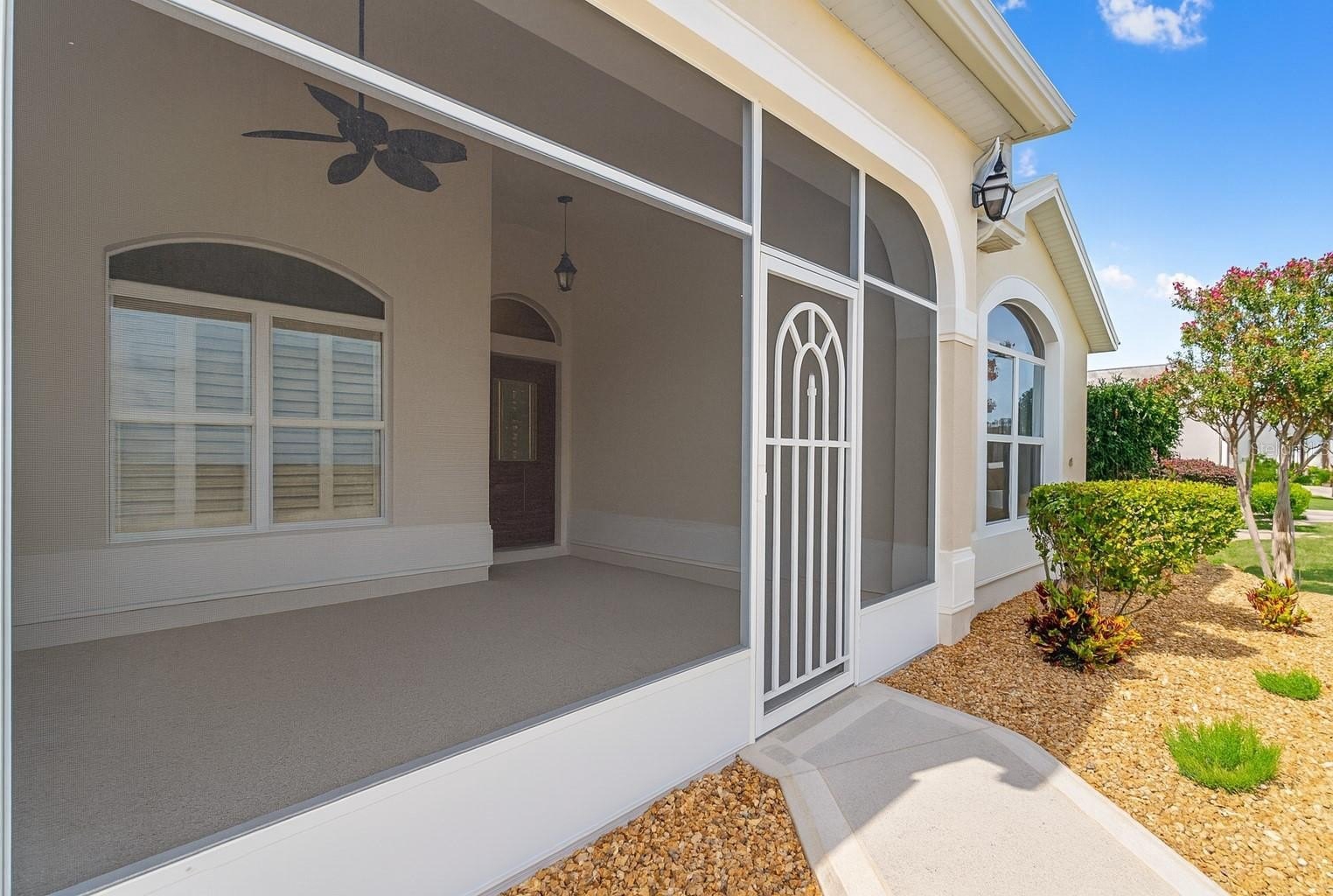 Wait until you see the FLORIDA ROOM, which provides extra space for whatever uses you may have as it seamlessly transitions from the living area and adds extra square footage. There is a door which leads out to the back porch with Privacy and an ELECTRIC AWNING for shade and comfort. The Laundry Room with a newer Washer (2024) and Dryer and LAUNDRY SINK leads to the double GARAGE which has a new, beautiful EPOXY FLOOR, storage, attic stairs with decking and a Whole House Water Filtration/Softening System. The Irrigation Control in the garage has been recently replaced with WiFi accessibility and there is a Whole House Surge Protector. This home has been so well maintained and had been recently updated and refreshed! It is on a quiet street and in a Very Socially Active Neighborhood (Castleberry) that you will just Love! This location is a mile from Lake Sumter Landing for entertainment and dining as well as two pools, golf and nearby Pimlico Recreation Center. Look no further if you are searching for a Move-In Ready Home in a desired Location in The Villages, FL. There is even a GOLF CART Available! I can't wait for you to see it!