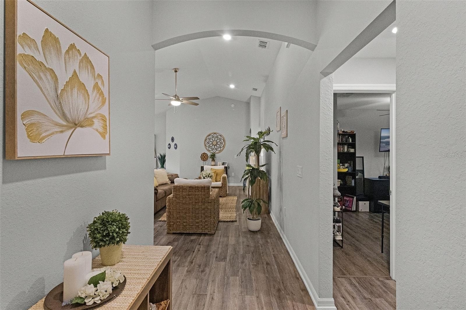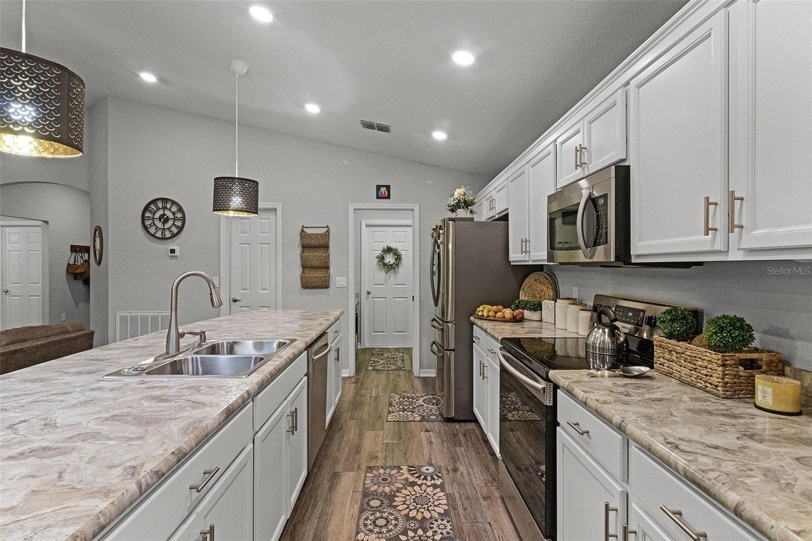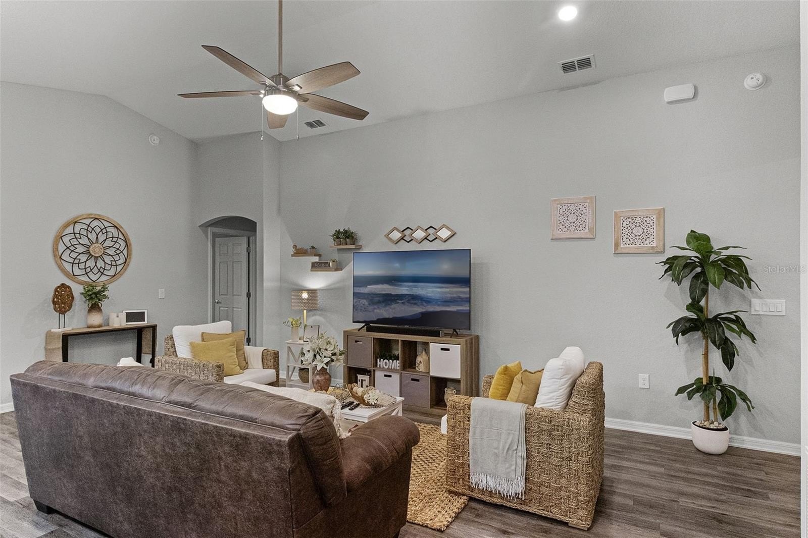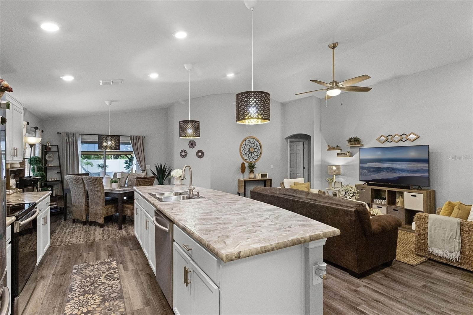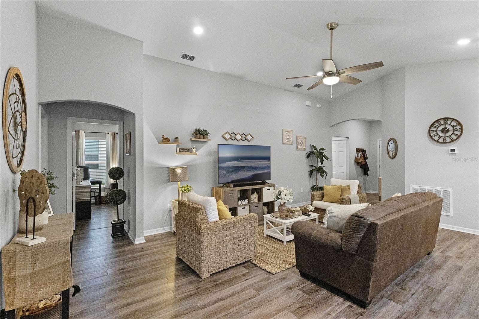 SOLAR PANELS WILL BE PAID OFF BY SELLERS AT CLOSING. Also, this house is eligible for an ASSUMABLE LOAN OF 2.25%. Why wait for a house to be build when this one is ready to move-in and to make it your home? Owners are highly motivated! Welcome to this absolutely stunning 4 bedroom, 2 bathroom home nestled in the highly sought-after community of Monticelli at Tower Lake. Immaculately maintained and full of charm, this residence offers a harmonious blend of modern upgrades, spacious living, and serene outdoor spaces, making it truly one of a kind. As you arrive, you'll be instantly captivated by the lush, manicured landscaping, a spacious 2-car garage, and a welcoming front porch, the prime spot to sip your morning coffee and enjoy the quiet surroundings. Step inside to discover easy-care laminate flooring throughout (NO carpet!), soaring high ceilings, and a bright, open-concept floor plan accented by stylish light fixtures that bring a touch of elegance to every space. At the heart of the home is the gourmet chef’s kitchen—a true showstopper featuring ample cabinetry, unique solid wood countertops, sleek stainless steel appliances, and a massive island with bar seating. Whether you're whipping up weeknight dinners or hosting elaborate gatherings, you'll find everything you need right at your fingertips. Adjacent to the kitchen, the elegant dining area overlooks the backyard through a large set of sliding glass doors, flooding the space with natural light and providing a gorgeous backdrop for memorable meals with family and friends. The private primary suite is tucked away for maximum relaxation, featuring an oversized walk-in closet and a luxurious en-suite bathroom with dual vanities, a soaking tub, and a walk-in shower—your own spa-like escape at the end of a long day. Three additional bedrooms offers endless flexibility for family, guests, or even a home office, gym, or creative studio. A second full bathroom ensures everyone has space and comfort. This house comes equipped with energy-saving brand new solar panels that Sellers will pay at Closing. It also features a paid-off pure touch water filtration system. Step outside to your expansive backyard retreat, where a covered lanai leads to a fully fenced-in yard, perfect for pets, playtime, or gardening. The highlight of the backyard is the custom gazebo lounge area, ideal for summer cookouts, evening bonfires, or simply relaxing under the stars. Centrally located near shopping, dining, and everyday essentials, and with low HOA dues, this home offers both peace of mind and unbeatable value. Homes in this community do not come on the market often—don’t miss this rare opportunity to own a slice of paradise. Call today to schedule your showing—this immaculate gem won’t last long! You will fall in love with it!