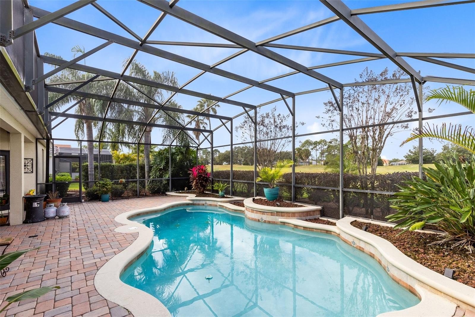 Not your typical golf-front home—this beautifully upgraded residence offers a rare combination of space, privacy, and thoughtful improvements throughout. Perfectly positioned on the 17th fairway, enjoy serene golf views from a large, covered, and private pool area featuring a 30x15 solar-heated pool, brick paver patio, built-in planter beds, new LED pool system and pump (2025), and tinted rear windows for added comfort.