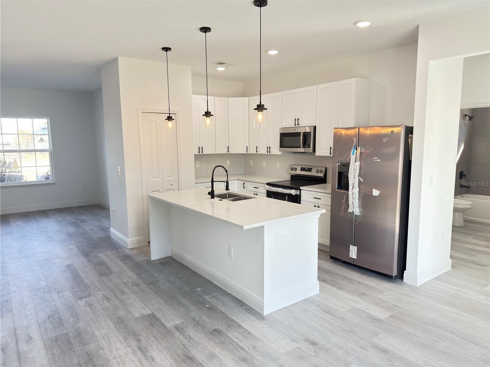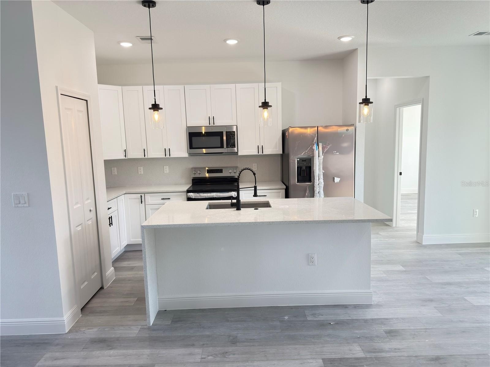One or more photo(s) has been virtually staged. MOVE IN READY!!!! Up to $10k in closing costs incentives offered! Exclusive Floor Plan!!! Brand-New Luxury Residence | 4 Bedrooms | 3 Full Baths | Dual Primary Suites This newly constructed, thoughtfully designed residence offers 4 Bedrooms and 3 Full Bathrooms, combining modern elegance with functional living. The builder incorporated extensive upgrades throughout, delivering a refined home with attention to detail and quality finishes. The home features a rare dual-suite configuration, including a primary suite with his-and-hers walk-in closets and a spa style bathroom with a freestanding tub, shower, dual sinks and private water closet. The secondary suite features a private bathroom and walk-in closet, ideal for multigenerational living, guests, or flexible lifestyle needs. The open-concept floor plan is enhanced by high ceilings and seamless integration of the living, dining, and kitchen areas. Luxury vinyl flooring extends throughout the home, providing durability and a contemporary aesthetic. The kitchen and bathrooms are appointed with Quartz countertops adding an elegant touch to the finishes, Quartz backsplash on the kitchen complemented by Stainless Steel appliances, including a refrigerator, microwave, dishwasher, and electric range. Located in the Marion Oaks community, the property offers convenient access to supermarkets and proximity to I-75, supporting both daily convenience and commuting needs. This residence presents a well-balanced blend of modern design, upgraded finishes, and practical layout in a growing residential area.