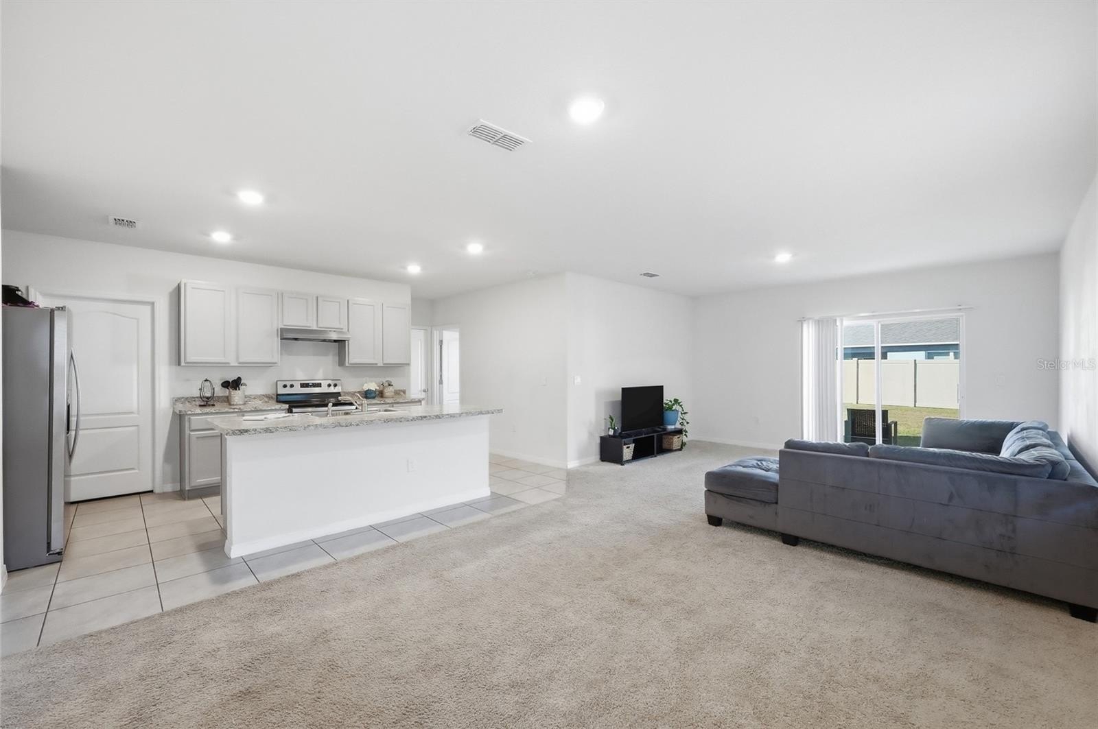 The open-concept floor plan creates a seamless flow between the kitchen, dining, and living areas—ideal for gathering with family, hosting guests, and making lasting memories. The living room and bedrooms are carpeted for added comfort, while the home’s modern design delivers both style and functionality.