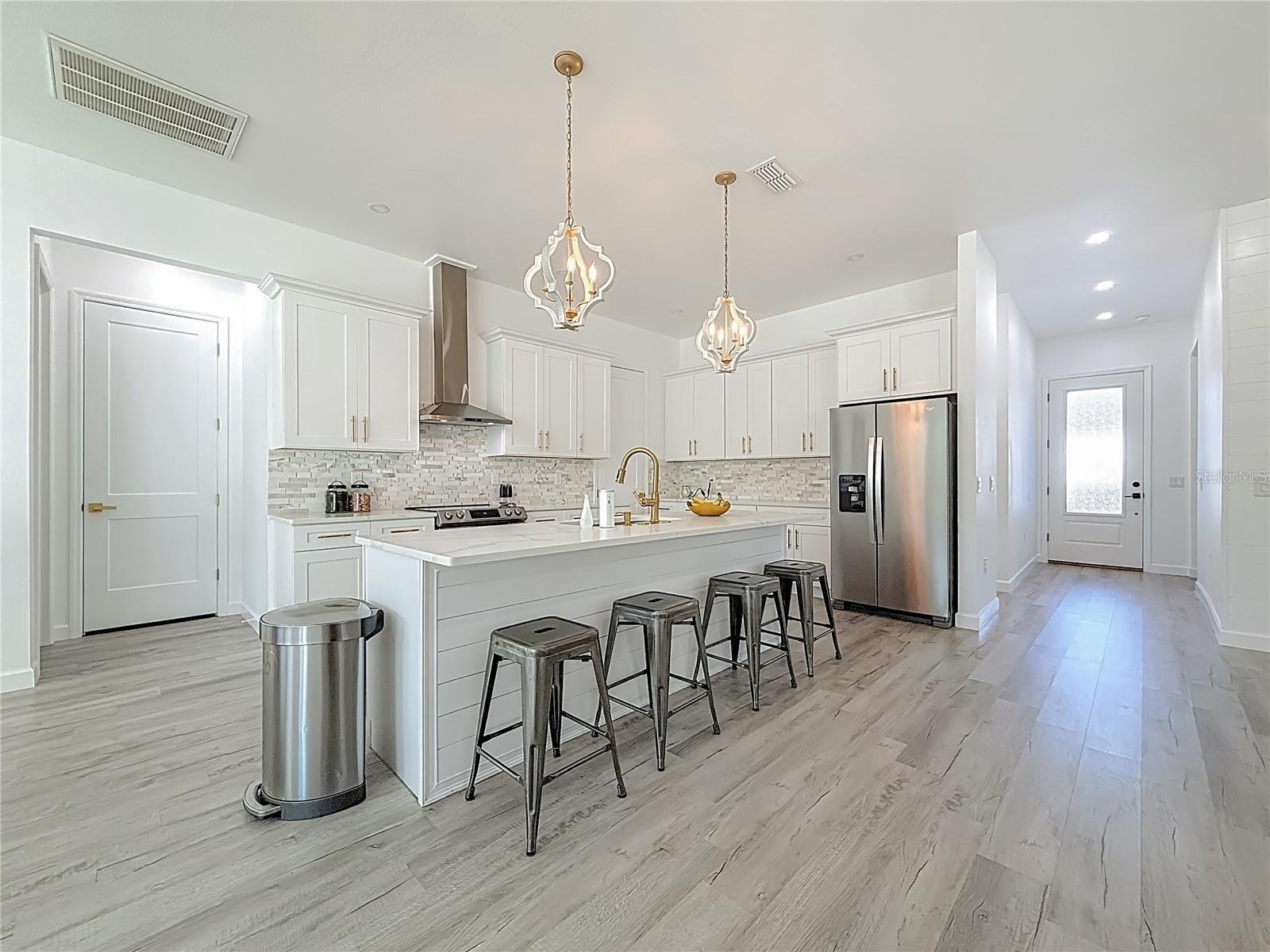 Bring your boat! Stunning 3BR/3BA luxury home in Tarpon, professionally designed and built in 2023 with no expense spared! Features soaring ceilings, impact windows & doors, and an open split floor plan with THREE FULL baths and a separate laundry room. Chef’s kitchen with all-wood cabinetry, quartz countertops, center island, stainless steel appliances, and tiled backsplash. Luxury water-resistant LVP flooring throughout. Spacious primary suite with walk-in closets and spa-style bath featuring dual sinks and a frameless designer shower. Bedroom 2 has a walk-in closet and bedroom 3 has a huge, oversized closet. All have their own bathroom. Energy-efficient spray foam insulation to keep the home cool. Front and rear porches overlooking a large yard. NO HOA. Conveniently located near Downtown Tarpon, Tarpon Marina, schools, hospitals, dining, shopping, golf courses, and major commuting routes.