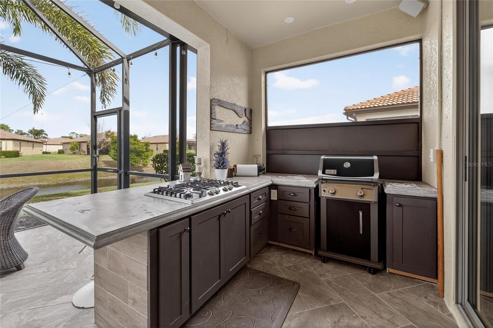 YOUR SEARCH IS OVER!!! Don’t wait to view this MOVE-IN READY CUSTOM INTERIOR FEATURED VILLA…. ABSOLUTELY STUNNING waterview home. Located in the beautiful highly desirable gated 55+ Southshore Falls Del Webb Community. 2 bedrooms/with flexroom/study/den, 2 Bath and 2 car garage villa. From the moment you arrive at this immaculately maintained home you will sense the pride of ownership. This home has numerous CUSTOM INTERIOR FEATURES. This beautiful water view home is perfectly situated on a manicured lot (landscaping maintained by HOA). As you enter into this gorgeous home through a beautiful glass insert door, you will be impressed with the open spacious custom design features, floor plan, crown molding with tasteful overhead lighting/ceiling fans. Large bright chef's dream gourmet kitchen with beautiful marble designer backsplash, granite countertop, with plenty of workspace, beautiful soft closed rawers and a mixer (lift) cabinet with pull out drawers, recessed lighting, and breakfast bar. Spacious dining & living room providing the perfect open floor space for relaxing and entertaining. The large master suite includes, a large walk-in closet adjoining bathroom with double vanities counters and a large walk-in glass shower. The laundry room is fitted custom cabinetry and a laundry sink. As you step outside into your HUGE private tiled lanai enjoy the peace and quiet. No backyard neighbors. Perhaps enjoy a cup of coffee or an adult beverage with a good book or watch the ever-changing views of nature or perhaps grill dinner from YOUR CUSTOM LANAI FITTED KITCHEN. So Many upgrades and extras including, murphy bed in flexroom, ship lap featured walls, water softener, water heater replaced (2025), complete HVAC (2022), updated bathroom (2023), plantation shutters, granite countertops, beautifully finished cabinetry, crown molding, epoxy garage flooring, attic access stairs, insulated garage door, Hurricane Shutters, Gutters, and SO MUCH MORE!!. Enjoy an active adult lifestyle with resort style amenities: 14,000 sq. ft. clubhouse offers billiards, coffee/internet cafe, state of the art fitness center, library/card room, hobby/craft room and grand ballroom for parties and events! A sparkling lagoon pool and spa, resistance pool. Bocce ball, pickle ball courts, tennis courts and a putting green trail. Private roads with nature and walking trails, sidewalks and biking. Plus, the community offers numerous activities and social/special interest clubs. This gated 24-hour manned guarded community has everything you could ever need so there’s always something to do! Truly a wonderful place to entertain family and friends! Located near shopping, waterfront dining, and a short drive to the beautiful Florida beaches! No CDD. Call for an appointment to view this stunning custom interior home. EASY TO VIEW. You will not be disappointed. Welcome to your own piece of Paradise!