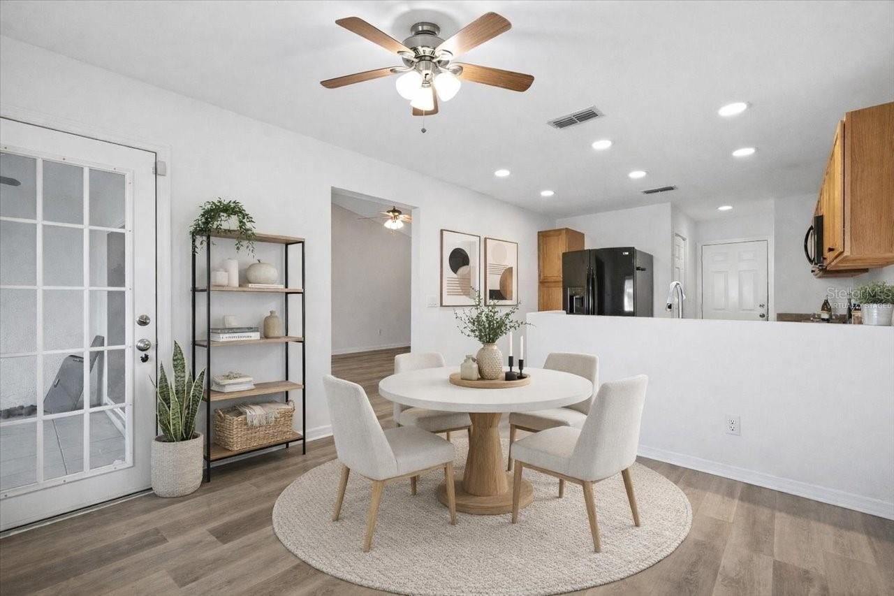 Fall in love the moment you arrive at this captivating 3-bedroom, 2-bath home with a 2-car garage, perfectly positioned on a sprawling corner lot shaded by majestic mature trees. Enjoy the comfort and privacy of a fully fenced yard, ideal for pets, play, and peaceful evenings—then unwind in your screened-in lanai, your own breezy retreat for morning coffee or sunset lounging. Inside, the open main living area stuns with soaring cathedral ceilings, creating a bright, airy space that feels instantly welcoming. The desirable split-bedroom plan offers privacy for everyone, and the sunlit primary suite is a true sanctuary—featuring a large picture window, gorgeous natural light, and a private ensuite for everyday indulgence. At the heart of the home, the kitchen shines with warm wood cabinetry, newer appliances, and an attached dining room made for gathering, celebrating, and savoring meals together. An inside utility room adds everyday convenience you’ll appreciate. This home delivers peace of mind and modern comfort with new floors (installed 2 years ago), a newer A/C (2 years), and hurricane impact windows—bringing both style and security to your next chapter. And the location? Simply unbeatable. You’re just 2 miles from vibrant Downtown New Port Richey, known for its award-winning restaurants, weekly farmers market, scenic Sims Park on the river, and local theater—where every weekend can feel like a getaway. All this and no HOA!!! Call your real estate professional today to schedule your private tour—your beautiful new home is waiting!
