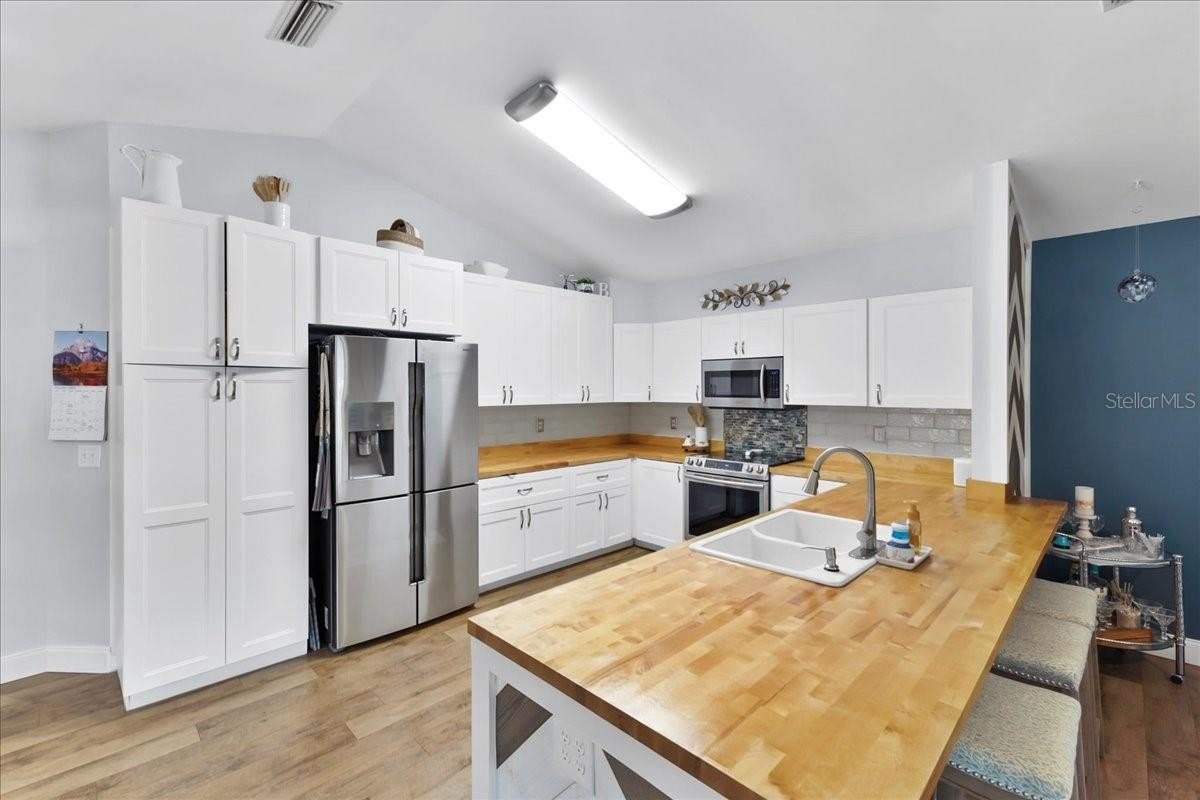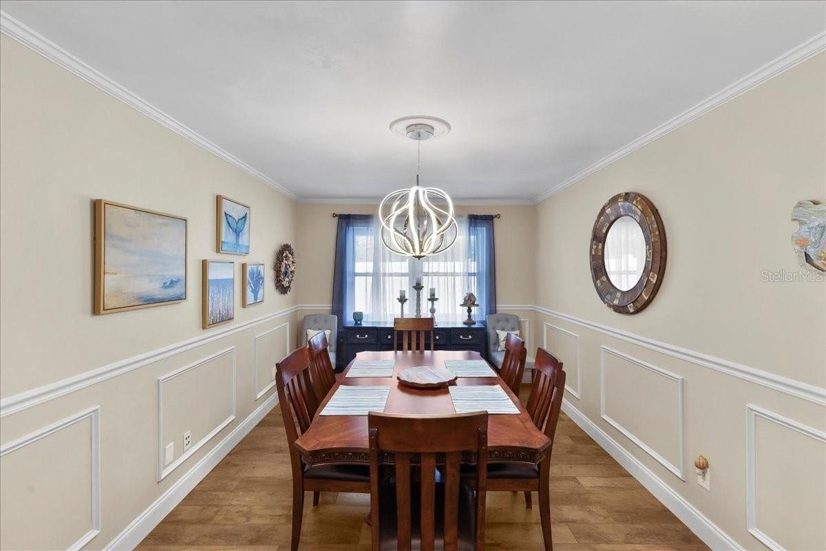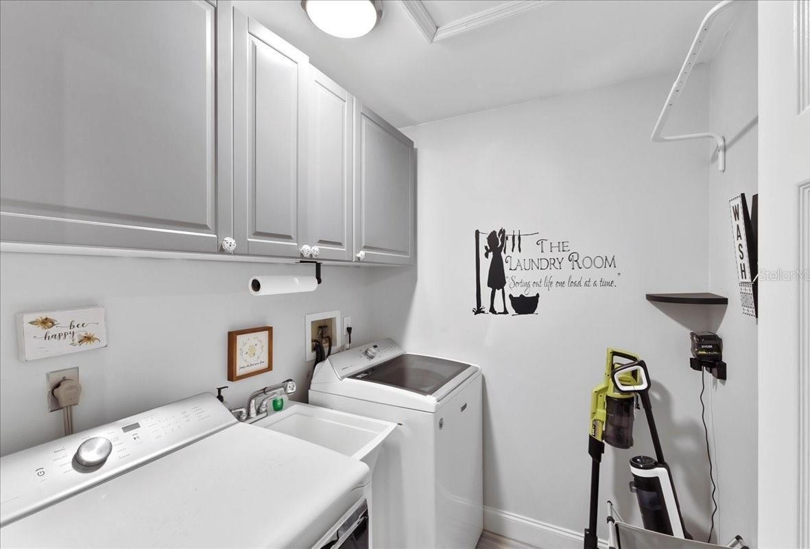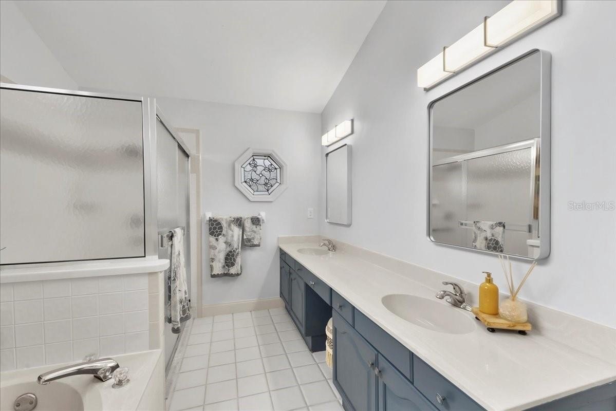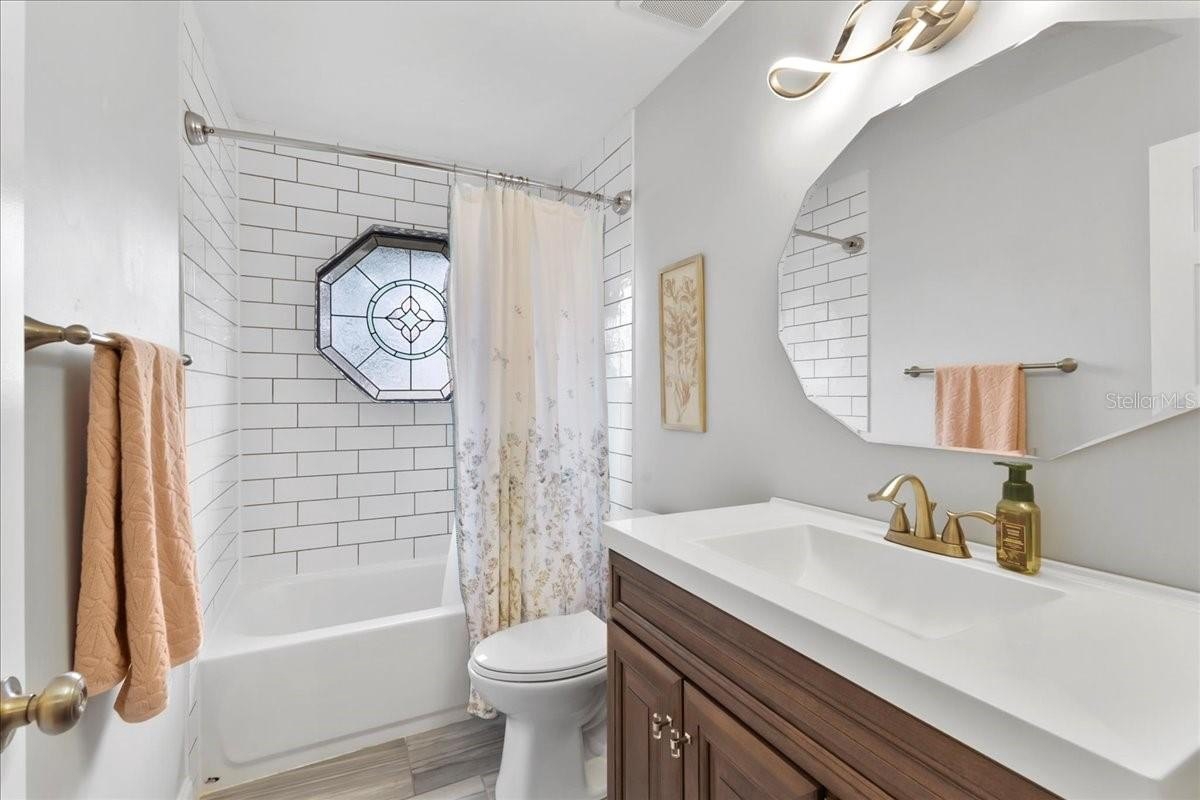 Move-in ready home in a sought-after gated community featuring soaring ceilings, abundant natural light, and a dual-sided wood-burning fireplace. Kitchen offers breakfast nook/bar, newer appliances (including KitchenAid dishwasher), and programmable Levolor blinds. Family room opens to an enclosed, rescreened lanai and covered patio. Extensive upgrades include vinyl replacement windows, two smart thermostats, upgraded electrical panel with generator transfer switch, added exterior/eave outlets, garage cabinetry with overhead storage, and floored attic storage. Outdoor improvements include paver courtyard, stone walkways, two paver patios, fountain, landscape lighting, curbed garden beds throughout, fresh exterior paint, and added gutters. Walking distance to the clubhouse and pool.