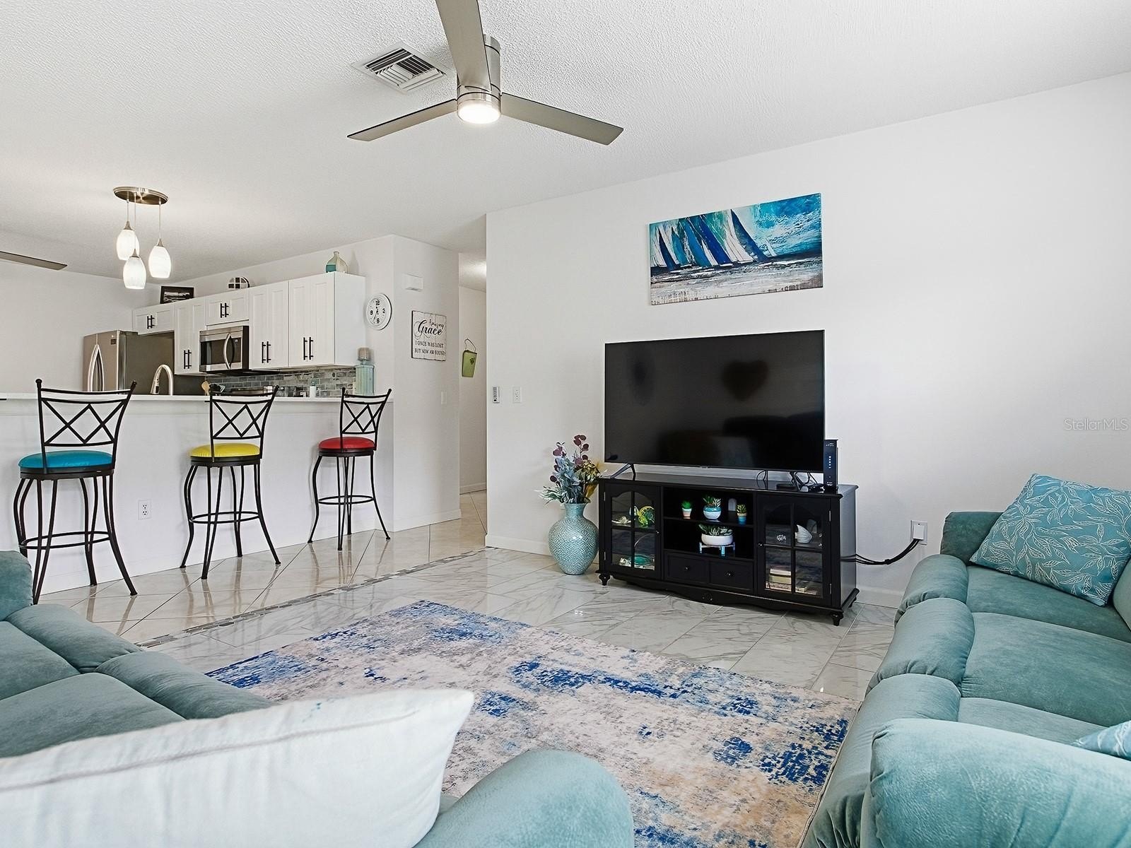 STUNNING PRESERVE VIEW ~ No backyard neighbors. 2/2 Colony Patio Villa. NO BOND ~ NO CARPET ~ NEWLY RENOVATED. Kitchen has Quartz Counters, Stainless Appliances, Glass Tile Backsplash and White Shaker Cabinets. Open Concept with long breakfast bar and beautiful tile through main living area with lovely laminate in bedrooms. Primary bedroom has WALK-IN Closet, Stone Counters in Bathroom with Step in Shower. Guest bedroom is large and has a double door closet. Guest bath has stone counters and tub shower combo. ENCLOSED LANAI with double pane sliding windows, Privacy Shades and Tile Floor. Your PRIVATE Side Yard has an EXTENDED Patio for your beautiful scenic view of the water preserve. Totally Shaded in the morning and evening! This patio villa has overflow parking across the street. Located in the VILLAGE of RIO PONDEROSA, you will be a short golf cart ride to Spanish Springs and Lake Sumter Landing, Publix, Target and an abundance of shopping. Enjoy a variety of Championship and Executive Golf Courses. Neighborhood and Family Pools are right around the corner as well as the Recreation Centers with Pickleball, shuffleboard and more games. This is the ONE – OF – A – KIND!!! Schedule your appointment to see it.