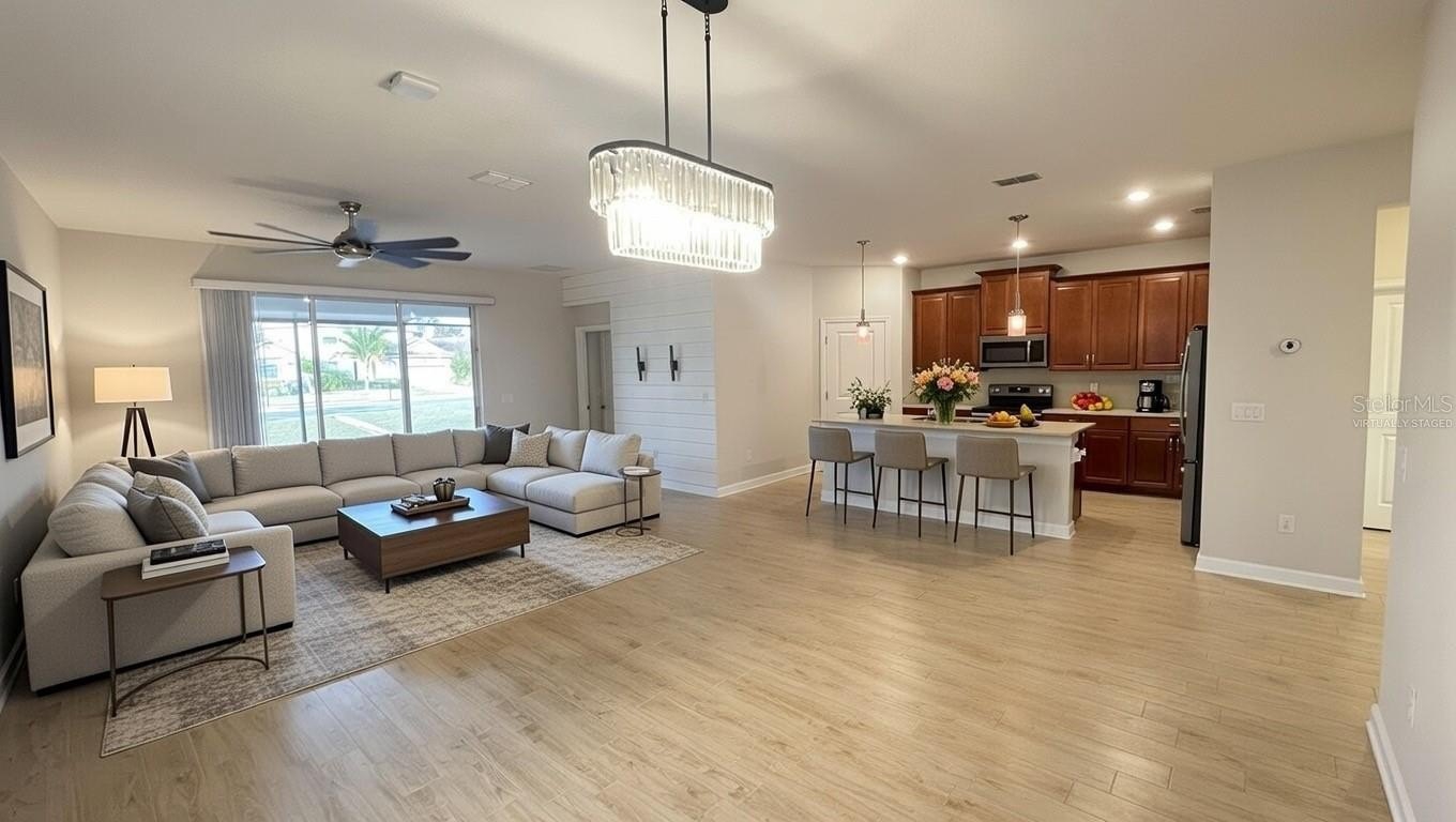 One or more photo(s) has been virtually staged. Upgrades galore! Beautifully situated 4 Bedroom / 3 bathroom home located in the 24/7 guard gated Providence community in Davenport. Your new home can be used as either a primary residence, a second home, or a long term rental property (more than 6 month leases). Elevated living experience with immaculate landscaping, tile roof, paver driveway and upgraded tile flooring throughout the main living areas. As you enter the home you will appreciate the screened in door for additional privacy and security. The home opens to a lovely foyer with light tan colored wood plank like tiles, perfect for ambiance and a busy lifestyle. On the left you will find 2 large bedrooms and a convenient hallway bathroom. Walking towards the back of your home you will pass a short hallway to the laundry room, garage, and the third bedroom which also has an ensuite bathroom. Continuing on visitors will enter a large open concept living area. On the right will be your enhanced kitchen with quartz counter tops and stainless steel appliances. Perfect area for hosting the next get together! Abundant space for the dining table as well as your favorite seating arrangements in the open floor space to take in the big game! Before heading out to the screened enclosure and covered patio, make sure to go to your right and experience the lovely master bedroom. 2 well proportioned his and her walk in closets, and a large space for your bedroom furniture set. Soaking tub, a separate shower and an enclosed water closet are all part of your ensuite master bathroom. As part of the Lakeside neighborhood in Providence, you will have access to both the main amenities such as tennis / pickleball courts, gym, basketball courts, playground, water slides, pools and also the Lakeside pool area. Extensive walking trails have been built in Providence and you will enjoy being part of a golf course neighborhood. Your new home is located within 20 minutes to the nearest Disney World Park and extensive shopping at Posner Park and the Loughman Publix shopping area. Schedule your showing today!