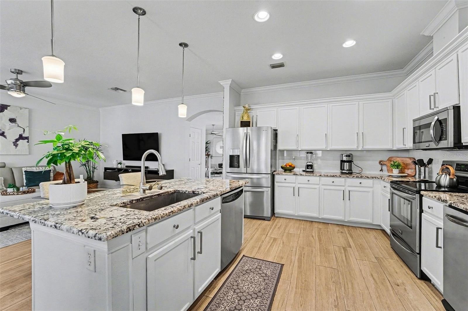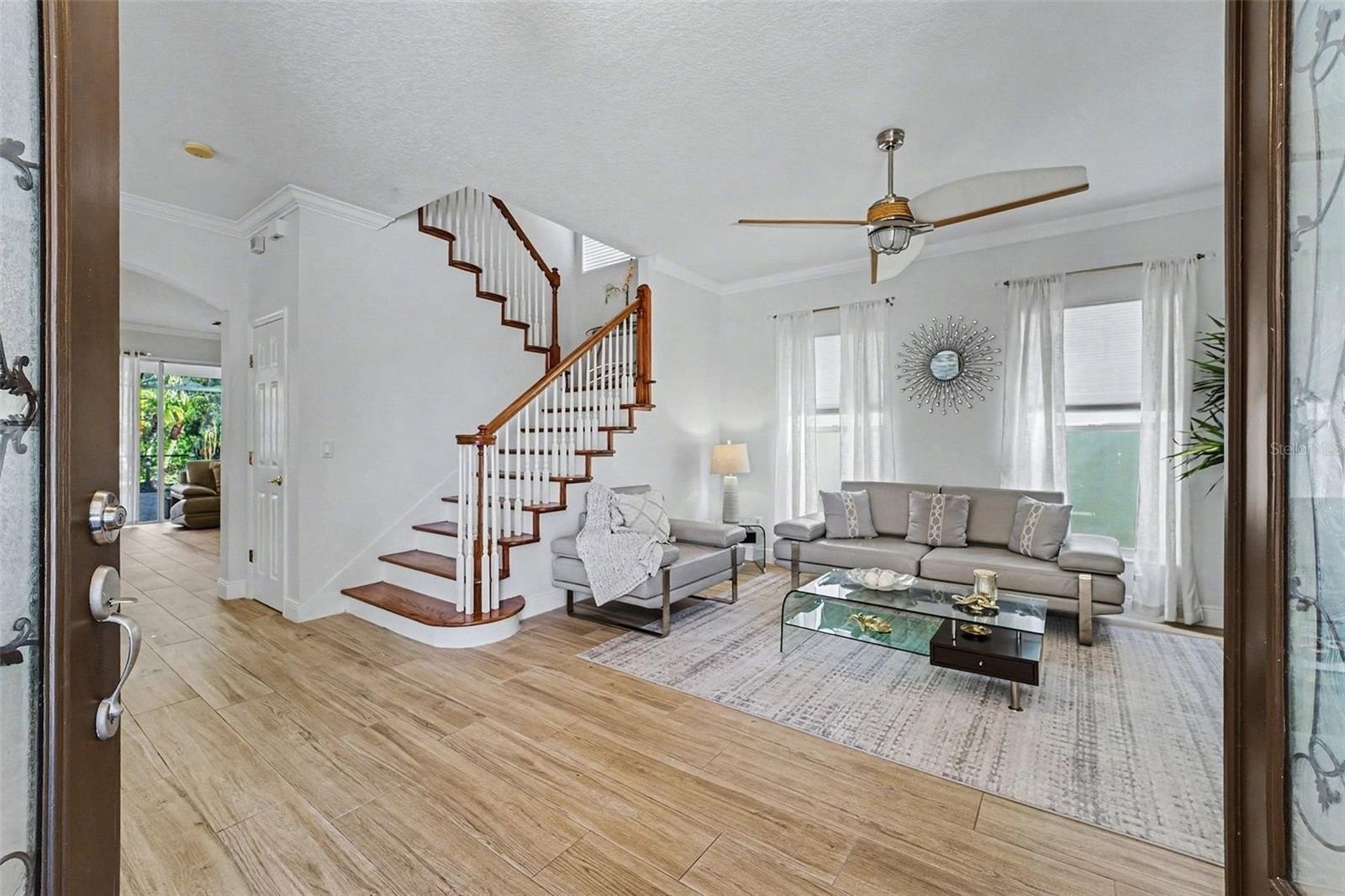 Welcome to Paradise! Discover this spectacular move-in-ready home in one of Tampa’s most exclusive gated communities — Cory Lake Isles. This stunning 5-bedroom, 4-bathroom residence offers over 3,100 square feet of beautifully designed living space — perfect for entertaining and everyday comfort. Step through the elegant double lead-glass doors into the formal living and dining areas. The dining room features a gorgeous custom stone accent wall, setting the tone for the home’s upscale design. The spacious family room is both inviting and impressive, with soaring ceilings, built-in shelving, a mounted TV, crown molding, and beautiful 5.25” baseboards. The dream kitchen will delight any cook — featuring stainless steel appliances, granite countertops, wood cabinetry, crown molding, tile backsplash, an oversized center island with a breakfast bar and pendant lighting. A closet pantry, and a cozy breakfast nook complete this space. Downstairs you’ll also find a versatile bedroom (currently used as an office) and a full bath — ideal for guests or working from home. Upstairs, the luxurious primary suite awaits behind double doors. Enjoy a trey ceiling, two walk-in closets, and your own sitting area with two sets of French doors leading to a private balcony overlooking the serene conservation area. The spa-like primary bath includes 2 separate vanities and 2 separate toilet areas, a custom walk-through shower, and on one side there is a garden tub and a makeup vanity. Bedrooms 2 and 3 share a full bath, while Bedroom 5 has its own private en-suite — perfect for guests or teens. The upstairs laundry room with wash sink and extra storage makes daily life easy and convenient...and.. speaking of storage, make sure you check out the storage space under the stairway. Enjoy nature on your expansive screened lanai overlooking private conservation at the rear of the home. Outside, the brick-paver driveway leads to a 3-car garage (2-car side entry plus 1-car bay). Roof was replaced 3 years ago. Living in Cory Lake Isles means enjoying a true resort lifestyle — with a 165-acre ski lake, private beach, community boat ramp, Beach Club, resort-style pool, fitness center, parks, tennis and basketball courts, playgrounds, and more. Plus, you’re just minutes from shopping, dining, major roadways, and all services. Come experience the best of luxury and lakefront living in Tampa Bay — schedule your private tour today!