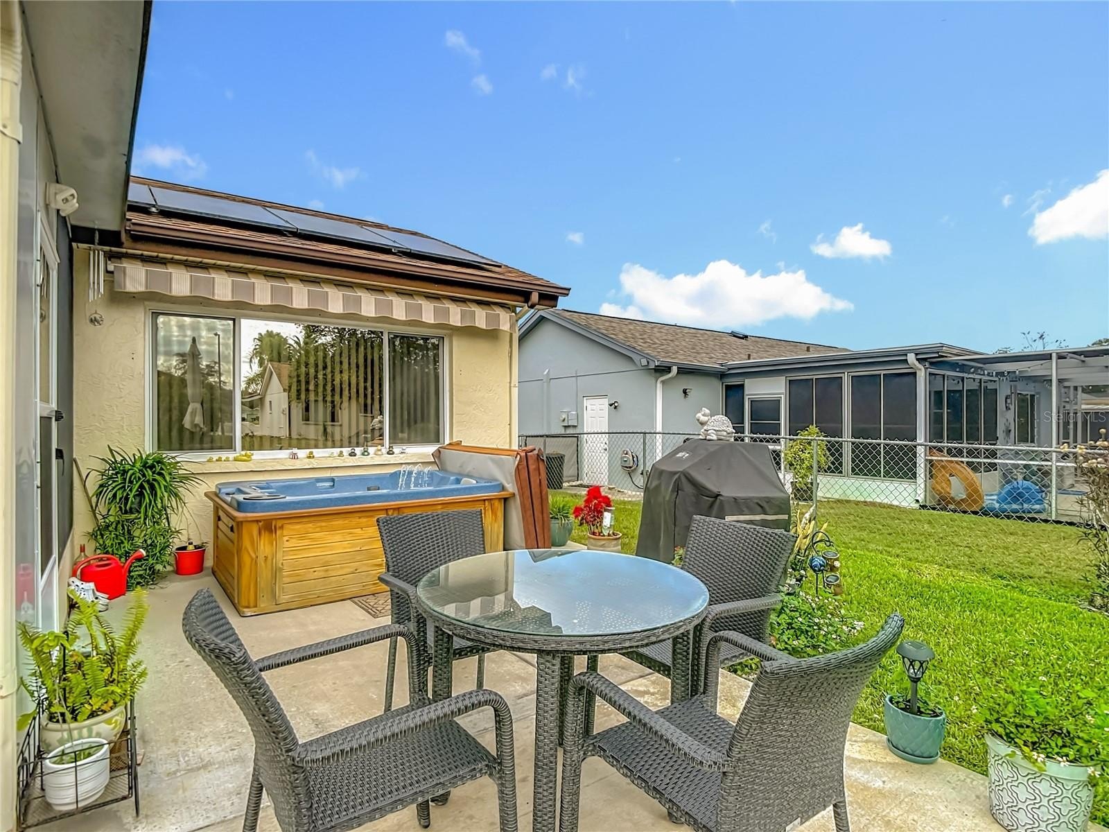 Charming 2 Bedrooms | 2 Bathrooms | Energy efficient Home. Welcome to your new sanctuary! This adorable two-bedroom, two-bath home perfectly blends cozy living with incredible outdoor entertainment possibilities and modern energy efficiency. Enjoy the convenience of newer appliances throughout the home, including a high-quality washer and dryer and a brand-new hot water heater. Significant investments have also been made to ensure maximum comfort and minimum utility costs, including new HVAC & Ductwork and solar panels to significantly reduce electricity bills. Enjoy peace of mind and consistent temperatures year-round with a these recent updates. A Private Water Well is available specifically for watering the lawn, keeping your landscaping lush without driving up your municipal water bill. The beautiful courtyard is the heart of this home, featuring lush, manicured landscaping that creates a serene atmosphere. Hosting a weekend barbecue or unwinding after a long day, is easy with the dedicated outdoor living space. Whether you're Relaxing in the cozy private spa or Enjoying the complete outdoor dining area and grilling station, this home is the perfect spot for any gathering. Discover the charm of Beacon Woods East! A designated Bird Sanctuary, perfect for nature lovers, this neighborhood features ample sidewalks, a huge saltwater community pool, and tennis courts. Conveniently located minutes from top schools, hospitals, and shopping, and just a short drive via Suncoast Pkwy to Tampa Airport and world-class beaches. Come see why this is the perfect place to call home! NO FLOOD ZONE! This property is located outside of designated flood zones, providing safety and potential insurance savings. LOW HOA FEES! Enjoy extensive community amenities without the high cost, making for an affordable lifestyle. Don't miss the opportunity to own this efficient, relaxation-ready home. Schedule your private tour today!