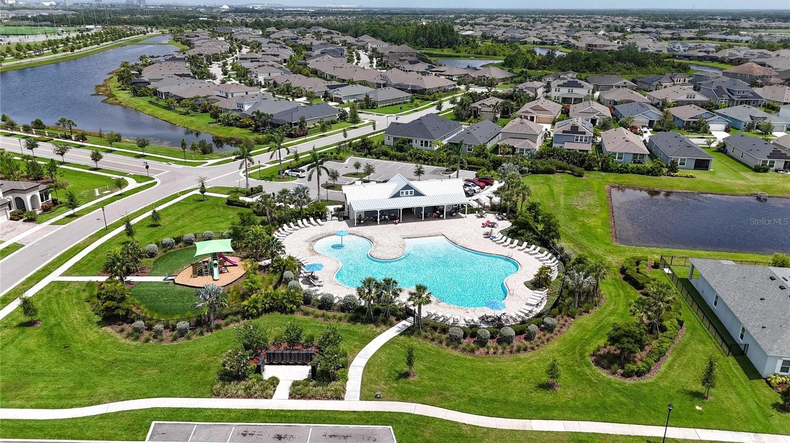 WHEN YOU KNOW, YOU KNOW! If you want and recognize quality upgrades well beyond most in an already upscale neighborhood, HERE is the home for you within wonderful Waterset! Inside and outside this Sandpiper by West Bay Homes, you'll find improvements and extras from a 400-SF screened lanai to $65,000 in Anderson brand-name, hurricane-impact, casement-style windows. These original owner expenses can be your advantages next as this beauty comes back to the market. Tile and luxury vinyl plank floors, decorator fans and fixtures, seamless gutters, salt-free water softener, 8-foot doors including full-glass French doors to the office and a frosted-glass entry with sidelight, Ring security system with cameras front and back, even an electric vehicle charger in the garage await you. The kitchen was gorgeous to start, featuring Zodiac quartz counters and Kinsdale cherry slate cabinets, but the owner chose higher-end appliances such as a Bosch dishwasher, Samsung 4-door black stainless refrigerator, and GE electric induction range (knowing the home is prepared for either electric or gas). Smart storage solutions were added throughout the property, from shelving systems in every closet to slide-out drawers in lower cabinets to countertopped cabinets in the laundry room. In the customized office, a space designed optionally as a 4th bedroom in the Sandpiper, the seller is including twin bookshelf towers and the attached file drawers between them. All this is provided in a professionally landscaped property with a stone-pavered walkway and patio connecting front to back, where flowering plants add privacy inside a picket fence of powder-coated black alloy. Waterset is a 1,319-acre master-planned development still expanding with thoughtfully designed public spaces and conservation areas, walking paths and playgrounds, neighborhood pools, a splash pad, and parks including dog runs. It's conveniently close to good schools, shops, restaurants, day care and health care, as well as major routes along Florida's Gulf Coast. See this home to decide what level of comfort you truly deserve!