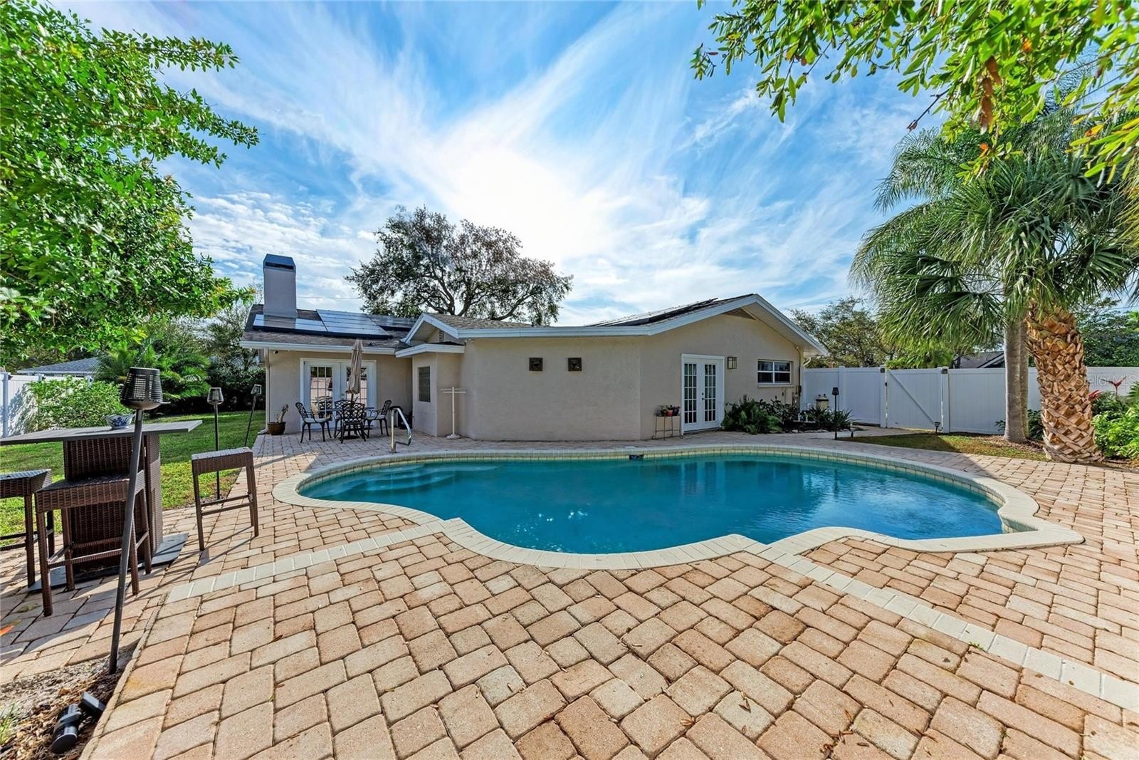 Step outside to an oversized corner lot framed by lush, mature landscaping, where the fully fenced backyard and sparkling pool create the perfect setting for entertaining, relaxing, or enjoying peaceful evenings outdoors. French doors from the family room and the primary suite open directly to the outdoor living space, creating a seamless indoor-outdoor connection. Beyond the extensive renovations and new appliances, the home also offers impressive energy efficiency with solar panels that help keep electric bills low, along with the added convenience of a solar-powered EV charger in the garage.
