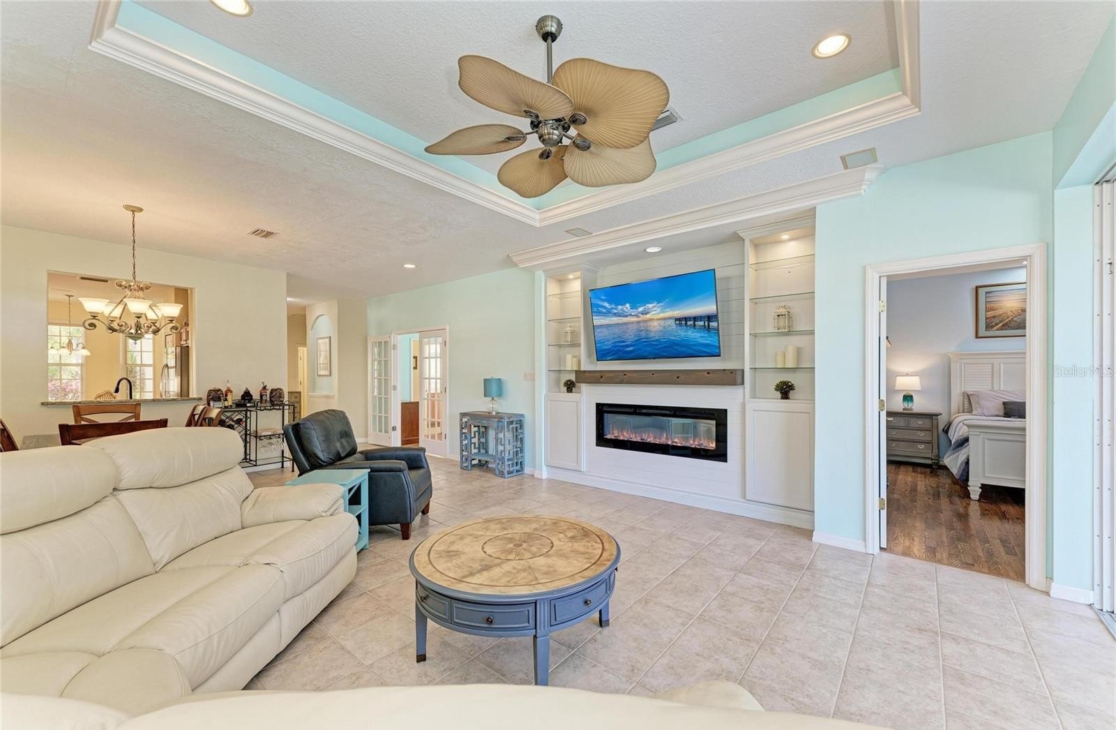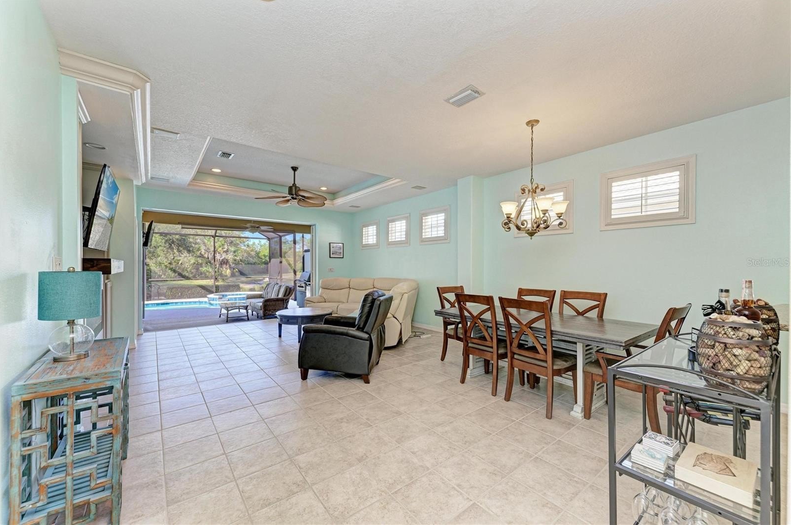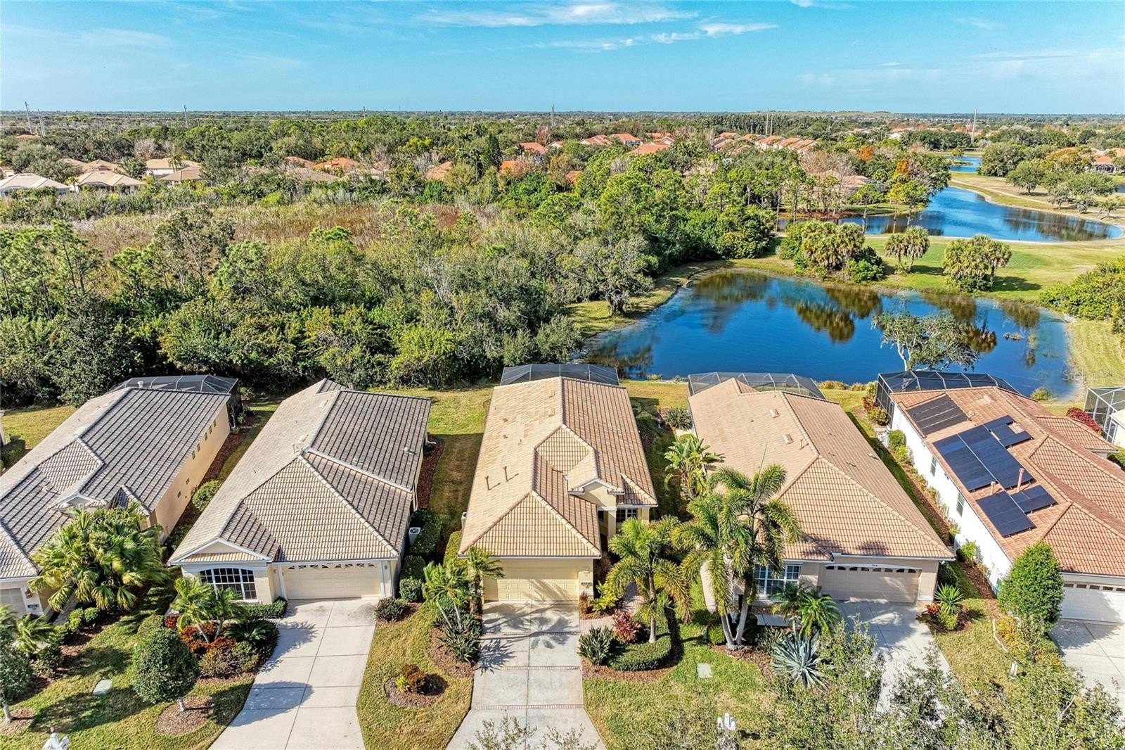 Perfectly positioned in the highly sought-after Tara Preserve, this meticulously maintained Lee Wetherington home enjoys tranquil pond and golf course views, creating a calm, retreat-like atmosphere. Step outside to your own private escape, where a sparkling pool and spa, outdoor kitchen, and breathtaking Florida sunsets set the stage for relaxed outdoor living night after night. Inside, abundant windows and triple-pane sliding glass doors flood the home with natural light and open seamlessly to the outdoor living space, creating a bright, open feel ideal for year-round enjoyment. Tile and laminate flooring throughout keep the space clean and cohesive, while the kitchen offers granite countertops, stainless steel appliances, pull-out shelving, under-cabinet lighting, a built-in wine fridge, and a cozy kitchen nook with an aquarium window. The primary suite is quietly positioned, offering a peaceful retreat with tray ceilings, generous closet space, double vanities, a walk-in shower, and serene water and fairway views. The thoughtfully designed floor plan provides excellent separation of space, with the second and third bedrooms privately situated and sharing a full bath, plus a large hall closet for additional storage. The third bedroom, accented with French glass doors, works beautifully as a home office, den, or quiet sitting room. A separate interior laundry room includes a new washer and dryer (2022). Major updates are already complete, including a new tile roof (2023), new A/C (2022), and new water heater (2022). The pool has been resurfaced and upgraded with newer equipment, including a heater, pump, and filter. Additional features include hurricane shutters, surround sound, a fireplace with custom entertainment center, landscape lighting, and a super clean two-car garage. Residents of Tara Preserve enjoy low HOA fees that include cable and internet, along with access to a heated community pool and spa, clubhouse, and pickleball courts. Surrounded by Tara Golf & Country Club and The Preserve Golf Club, with golf membership optional, the community is ideally located near I-75, UTC shopping and dining, Sarasota Airport, downtown Sarasota, Tampa/St. Pete, and the area’s stunning Gulf Coast beaches. CDD is included in the taxes, adding to the overall value and ease of ownership.