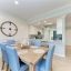 The UPDATED KITCHEN is both stylish and functional, featuring counter-height granite countertops, updated cabinetry, and an elegant tile backsplash. The adjacent dining area flows seamlessly into the great room, which is highlighted by a custom granite-topped credenza with ample storage, a distinctive ceiling detail, and a chic dry bar—perfect for entertaining.