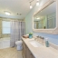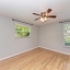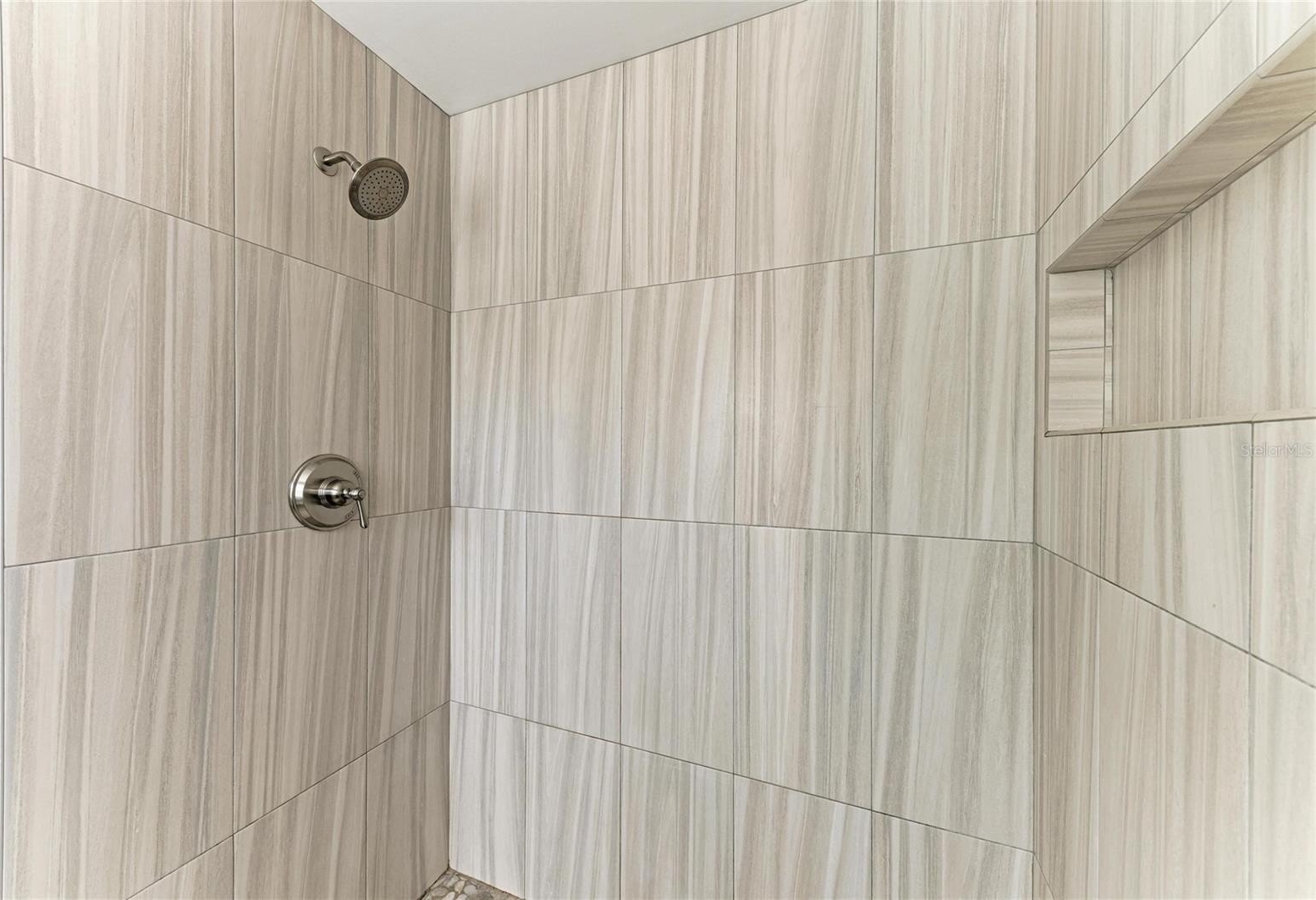 The spacious primary suite includes a walk-in closet, high-performance DC ceiling fan, and an updated en-suite bath with granite-topped vanity and an easy-access, no-threshold walk-in shower. The guest bathroom is equally well-appointed with a large tub/shower combo, oversized granite vanity, and a generous linen closet.