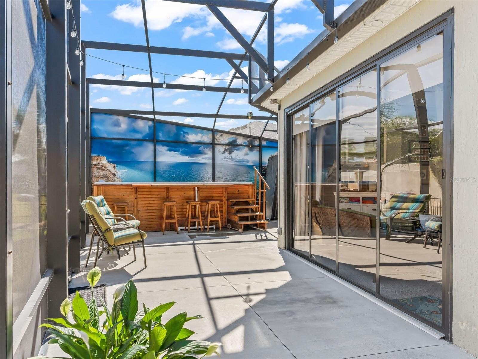 Welcome to this stunning 3-bedroom 2.5 bath designer Bridgeport model home located in the highly sought after Linden Isle neighborhood. Home has been extensively and tastefully updated and upgraded with high-end finishes throughout. You can truly enjoy the natural beauty of The Villages from the front porch of this water view home which has a west facing exposure affording fabulous sunset views. The backyard is a peaceful oasis with an upgraded enclosed lanai and birdcage with a 15-foot swim spa. The entry, lanai and garage have all been shark coated for an easy to maintain, slip-free surface.