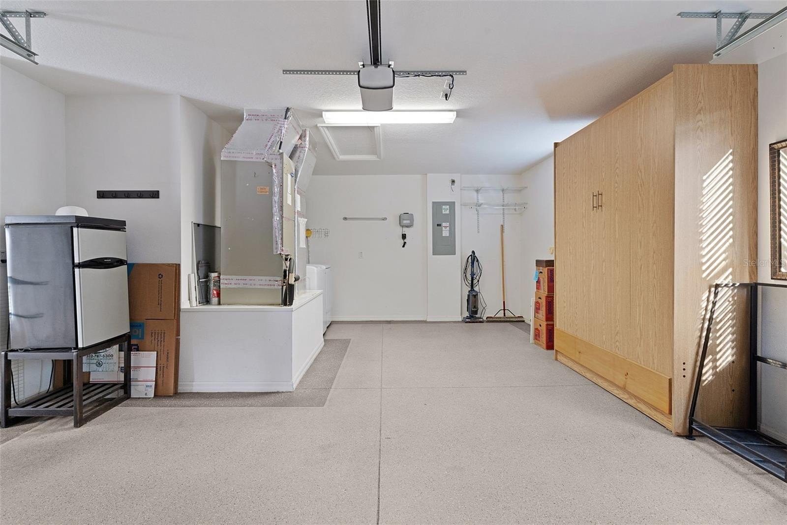 This property is well suited for full-time living or investment purposes, offering low-maintenance landscaping with no grass. Enjoy a prime location just minutes from Lake Sumter Landing, known for live entertainment seven nights a week, along with abundant dining, shopping, and entertainment options. With seven golf courses nearby, you’ll be spoiled for choice, and Cane Garden Country Club is just around the corner for a quick bite or social gathering. Interior upgrades include maple kitchen cabinets, a stylish kitchen backsplash, luxury vinyl plank flooring throughout (no carpet), soaring ceilings, and upgraded light fixtures. The enclosed lanai expands your living space, while color-coated concrete on the walkways and garage floor adds durability and curb appeal. The garage includes a Murphy bed, providing convenient extra lodging for guests. The private, north-facing backyard offers complete privacy—perfect for relaxing or entertaining. Located within walking distance to the pool and close to the shopping and medical facilities along 466 and 466A, this villa truly offers both convenience and comfort. Situated in a friendly and social neighborhood, this home offers an excellent opportunity to enjoy the lifestyle and amenities The Villages is known for.