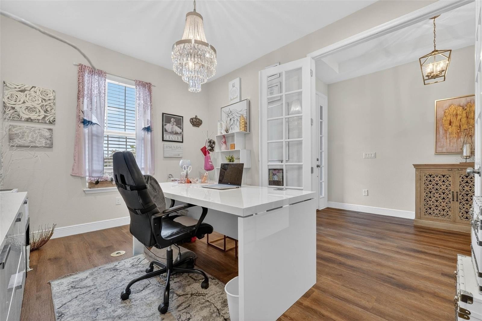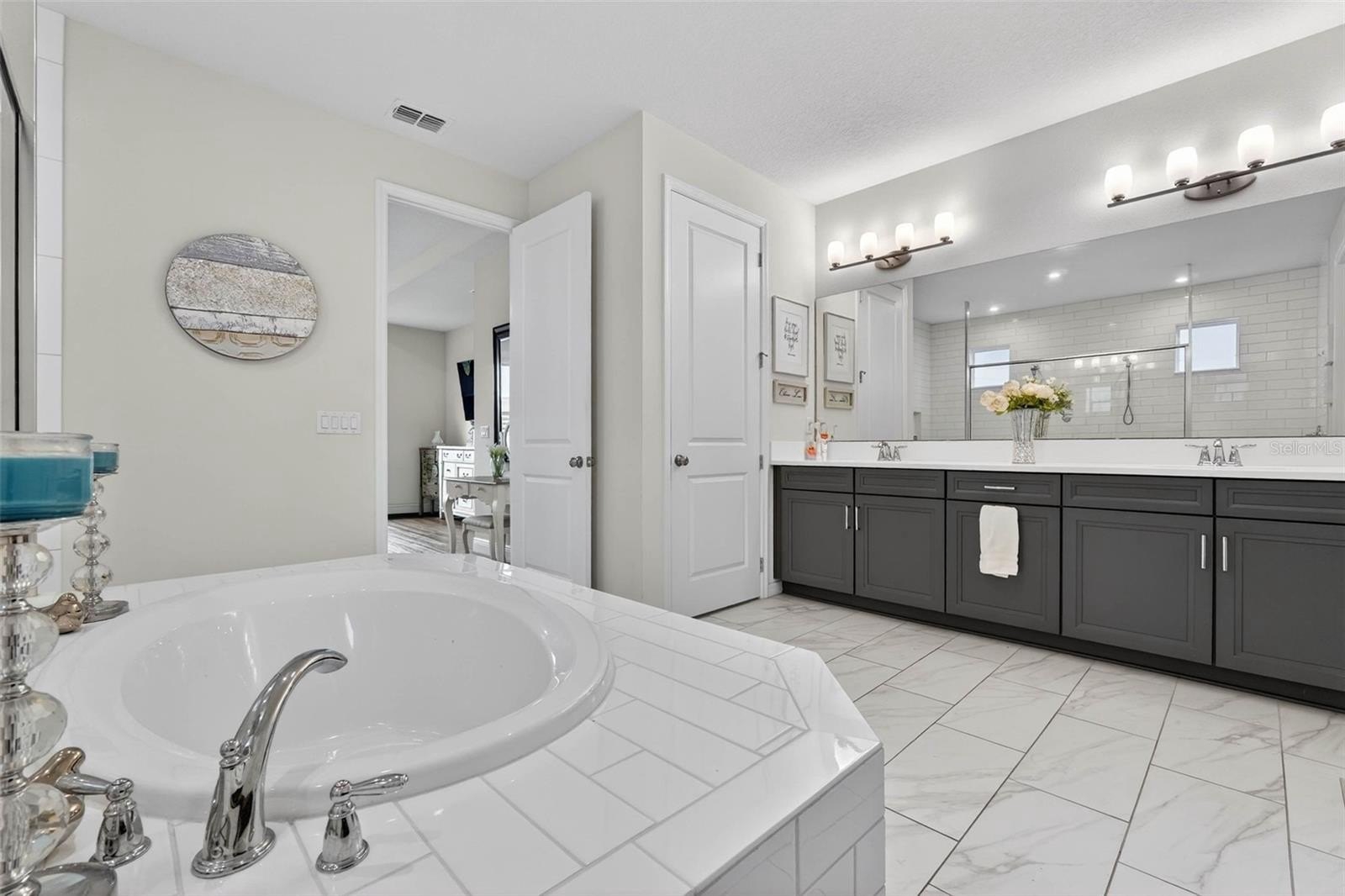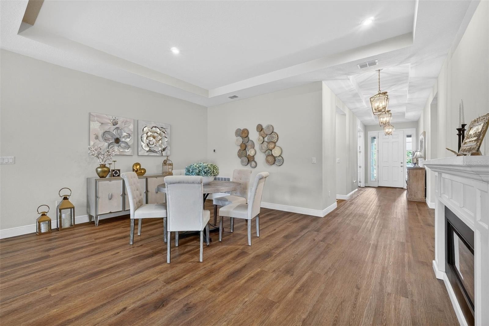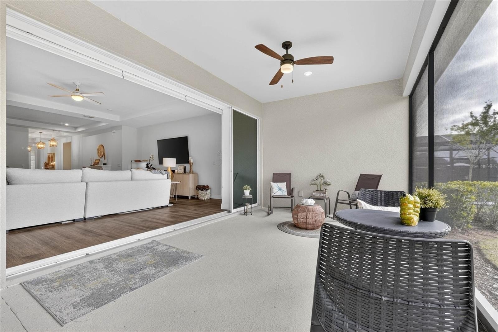 Exquisitely maintained, Taylor Morrison-built home in the highly coveted Canyons at Highland Ranch, offering 4 bedrooms, 3.5 baths, 2,713 sq. ft. of living space and a 3-car tandem garage! Designed for both elegance and comfort, this home features luxury vinyl flooring throughout the main living areas and bedrooms, an expansive open-concept layout, and a stunning living room accented by a tray ceiling, electric fireplace, and surround sound system. The gourmet kitchen is a chef’s dream, showcasing stainless steel appliances including a cooktop and built-in wall oven, quartz countertops, farmhouse sink, oversized island, and designer pendant lighting—perfect for entertaining. The private primary suite is a true retreat with a tray ceiling and a spa-inspired en suite bath featuring a walkthrough shower, soaking tub, double vanity, water closet, and a spacious walk-in closet. One secondary bedroom with French doors could easily double as an office or flex space, while the remaining two bedrooms each feature their own en suite baths, providing exceptional privacy for family and guests. Step outside to the screened lanai and take in tranquil conservation views with no rear neighbors. Residents of Highland Ranch enjoy resort-style amenities including a pool, splash pad, cabana, and basketball and volleyball courts, along with convenient access to the South Lake Trail, Turnpike, schools, shopping, and dining. This exceptional home is a must-see—schedule your private showing today before this rare opportunity is gone. (Be sure to enjoy the reality of this being your home by viewing the 3D Virtual Tour.)