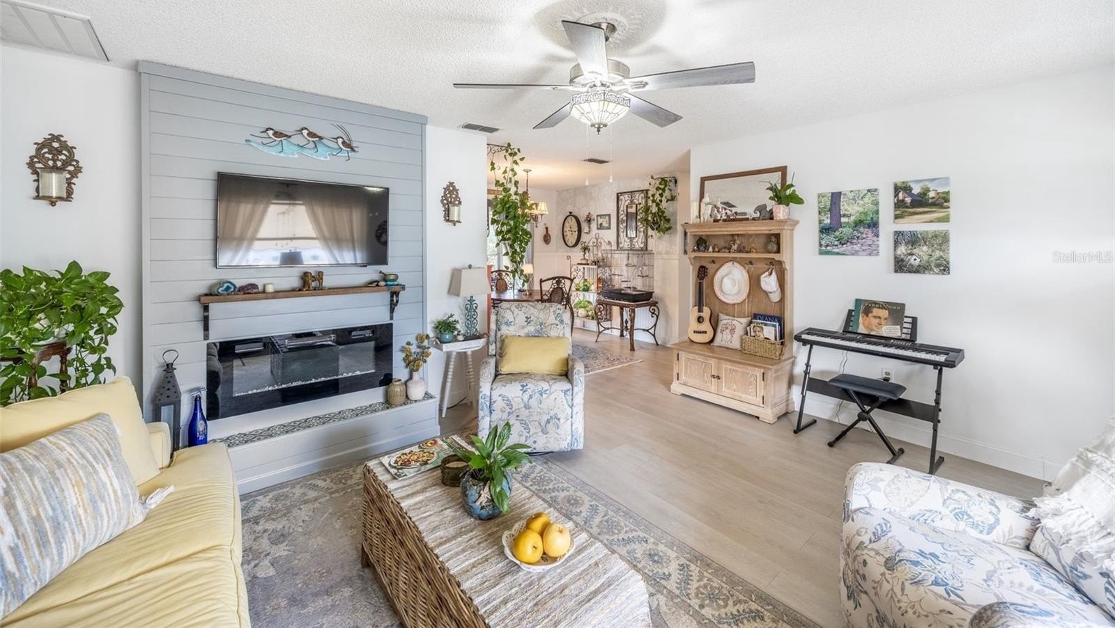 Welcome home to this beautifully updated 2-bedroom, 2-bath residence located in the highly desirable Palm Cay community. This move-in-ready home features durable vinyl plank flooring and tile throughout, offering both style and easy maintenance. All NEW within the last couple of years: New front door, flooring, ceilings fans, paint, trim, closet doors, glass shower doors, ship lap media wall with faux fireplace, added a paver patio, garage paint, etc. Updated lighting fixtures and modernized bathrooms enhance the home’s contemporary appeal, new while the well-appointed kitchen boasts stainless steel appliances—perfect for everyday living and entertaining. Additional highlights include an oversized one-car garage with ample storage space and a bright enclosed porch/sunroom ideal for relaxing year-round. The fully fenced backyard provides a private retreat, perfect for pet lovers. Residents of Palm Cay enjoy access to exceptional community amenities, including a pool, clubhouse, and tennis courts. Don’t miss your opportunity to own this charming home—schedule your private showing today. This one won’t last long!
