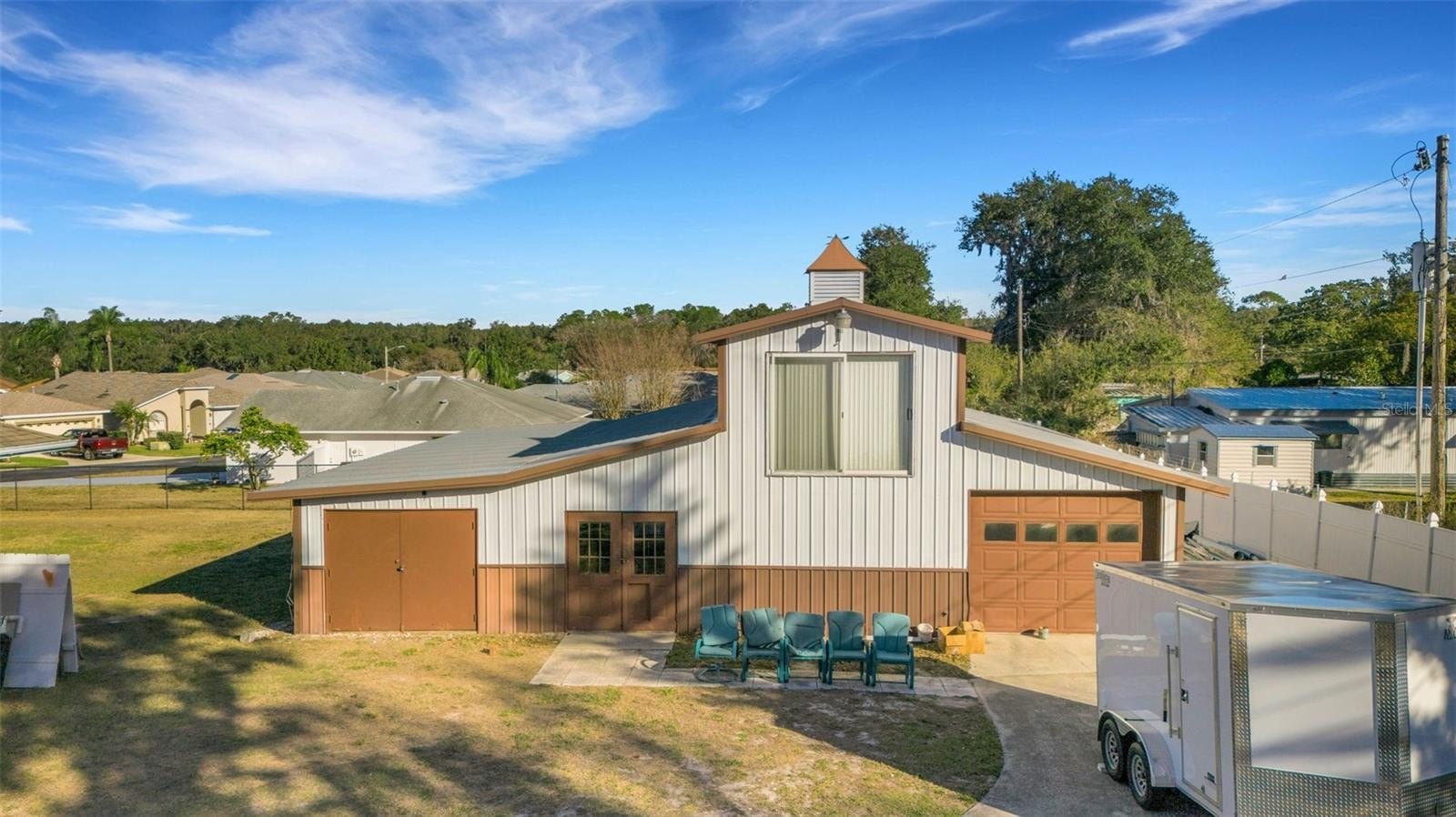 UNIQUE OFFERING – but “blink” and you could miss this one. Nearly 1.5-acre parcel with a 3200+ SF home AND a detached barn/workshop with partially finished living area above. Greeting you is a sweeping circular driveway leading to the wide deep front porch of this incredible tri-level home which affords formal living and dining rooms, a true county kitchen complete with brink accent walls and picture windows overlooking the screen enclosed pool in back. Upstairs are 3 spacious full bedrooms (this includes the primary suite with its own private bathroom), the main / center floor plays host to the formal living, dining and kitchen with its adjacent breakfast nook overlooking the pool. The lower level has a large bonus room (or 4th bedroom) with its own completely ADA accessible bathroom and finally the inside laundry room. Side entry garage from which you can enter the bonus room or utility room. County water for potable use and well for irrigation, complete new septic system (tank & drain field) in the last 60 days, two traditional AC systems in main house. A short walk away is the nearly 2000 SF barn/workshop with its 2nd floor partially finished living area (nearly 500 SF whose area is not included in the SF of the main dwelling) cooled by geothermal heat pump (sometimes referred to as GHP). Then there is the electric entry gate and private front yard pond . . . . stock this with fish and you can almost catch fish from your front porch! SWEET!