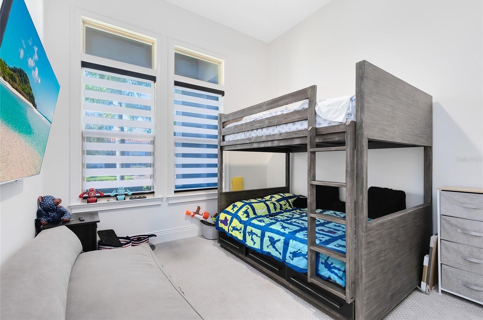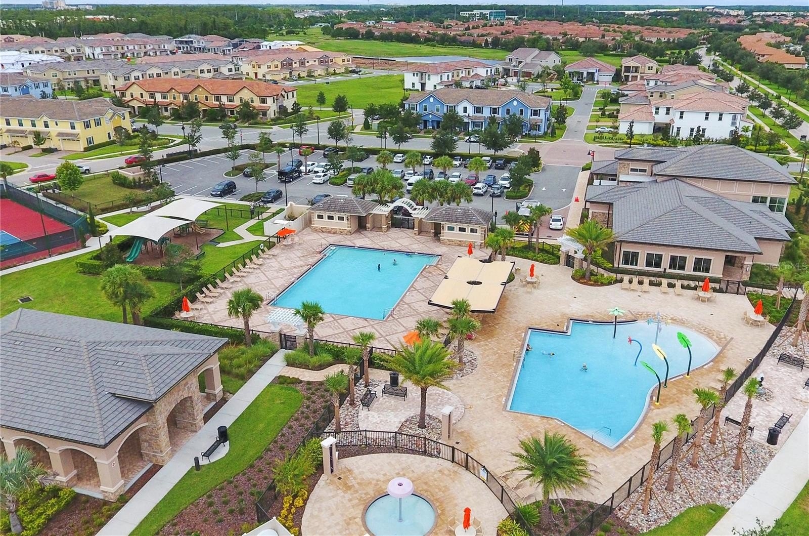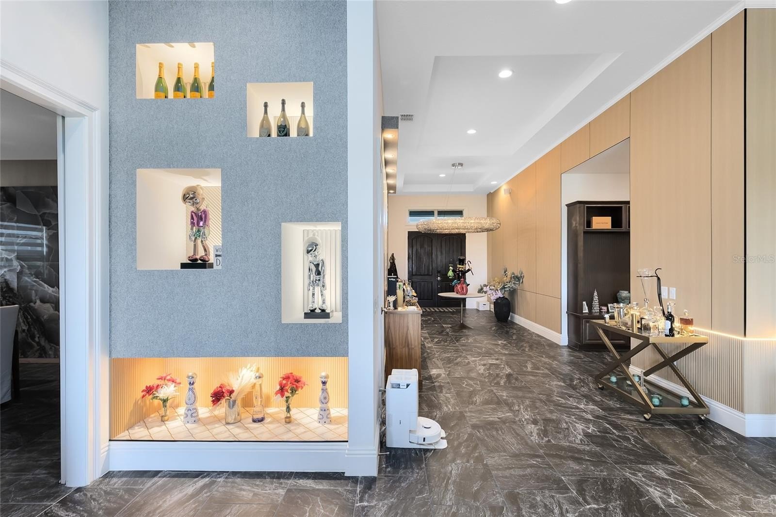 Step into the epitome of luxurious living with this exquisite residence, perfectly nestled in a prestigious 24-hour guard-gated Eagle Creek Village community in Lake Nona. Every detail in this home has been meticulously designed to offer both luxury and functionality, making it a true sanctuary for discerning homeowners. As you enter, the grand foyer welcomes you with its high ceilings and sleek porcelain tile flooring that extends throughout the home, setting the tone for the opulent spaces that unfold. The open floor plan effortlessly connects the living, dining, and kitchen areas, creating an inviting atmosphere that is perfect for both serene living and grand entertaining. The chef’s kitchen is a masterpiece of design, equipped with high-end appliances, custom dark wood cabinetry, and a sprawling quartz island where friends and family can gather around for casual meals or festive preparations. The adjacent formal dining area, defined by a striking marble accent wall and elegant modern chandeliers, offers the perfect backdrop for intimate dinners and lavish gatherings. The living area, a harmonious blend of comfort and style. Large sliding glass doors frame stunning views of the outdoor living space and flood the room with natural light. Step outside to discover a covered patio equipped with a state-of-the-art outdoor kitchen, including a built-in grill and sophisticated dining setup, perfect for al fresco dining under the stars. The resort-style pool and spa, surrounded by a screened enclosure, provide a private oasis with panoramic views of the meticulously maintained golf course. Retreat to the luxurious master suite, where tranquility awaits. The spa-like bathroom boasts a freestanding soaking tub, a spacious walk-in shower, dual vanities, and leads to a generously sized walk-in closet. Each additional bedroom offers unique comforts and stylish designs, ensuring every family member or guest enjoys personal space with upscale amenities. Community amenities enrich this luxurious lifestyle further, featuring a championship golf course, a chic restaurant and bar, and a fitness and recreation center. Tennis and basketball courts, along with meticulously landscaped parks and a dog park, cater to both active lifestyles and serene leisure. Located just minutes from major transport routes, top-notch shopping, gourmet dining, and elite medical facilities, this home offers not just a living space but a lifestyle of unmatched luxury and convenience. Discover the true meaning of upscale living in a home that goes beyond the ordinary, designed for those who seek the very best in life.