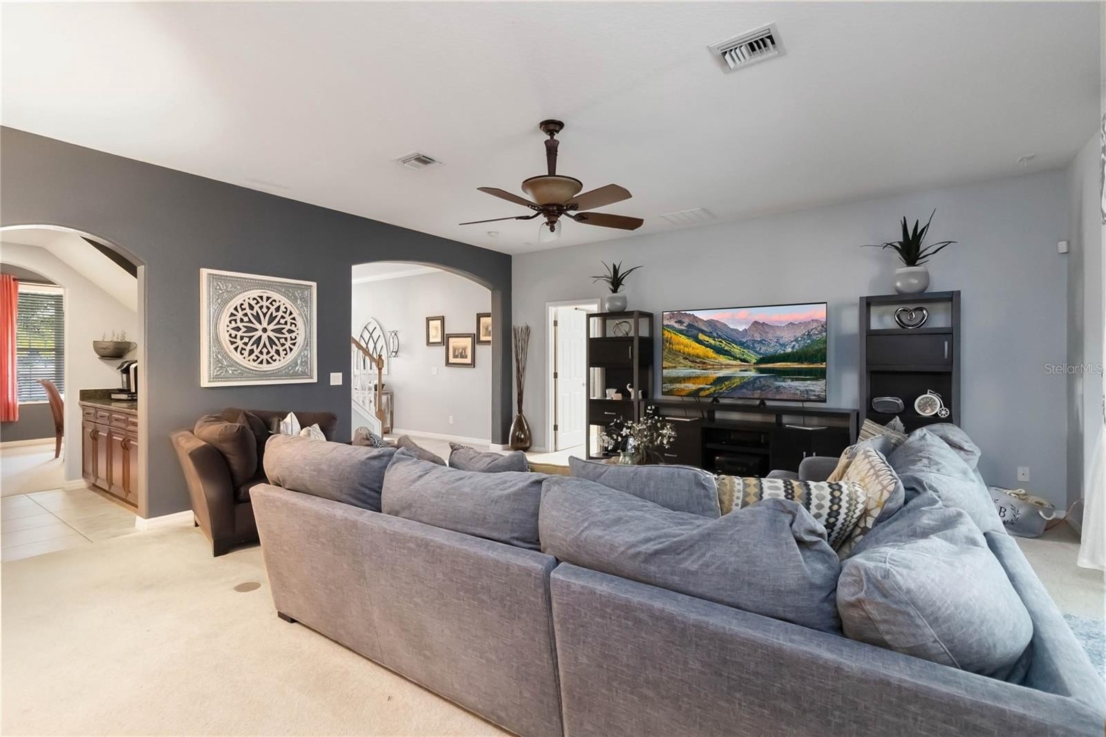 Welcome to this spacious 5-bedroom, 4-bath single-family GOLF COURSE home located at 945 Gulf Land Drive in the desirable Rock Springs Ridge community of Apopka. Offering nearly 3,800 square feet of living space, this two-story residence features a flexible floor plan with the primary suite and an additional bedroom on the first floor, ideal for guests, a home office, or multigenerational living. Upstairs includes three additional bedrooms and a large bonus or game room, providing plenty of space for everyday living and entertaining.