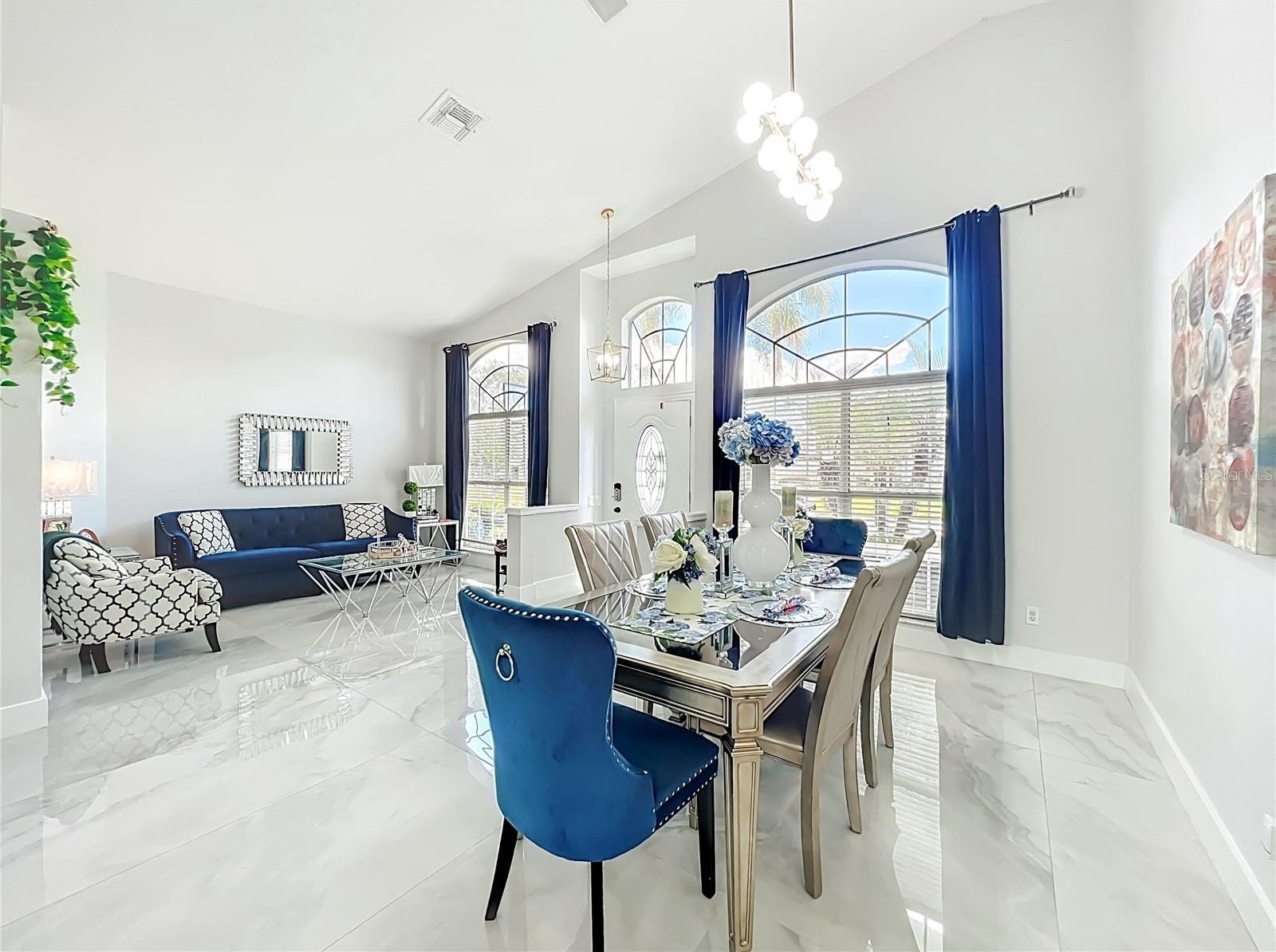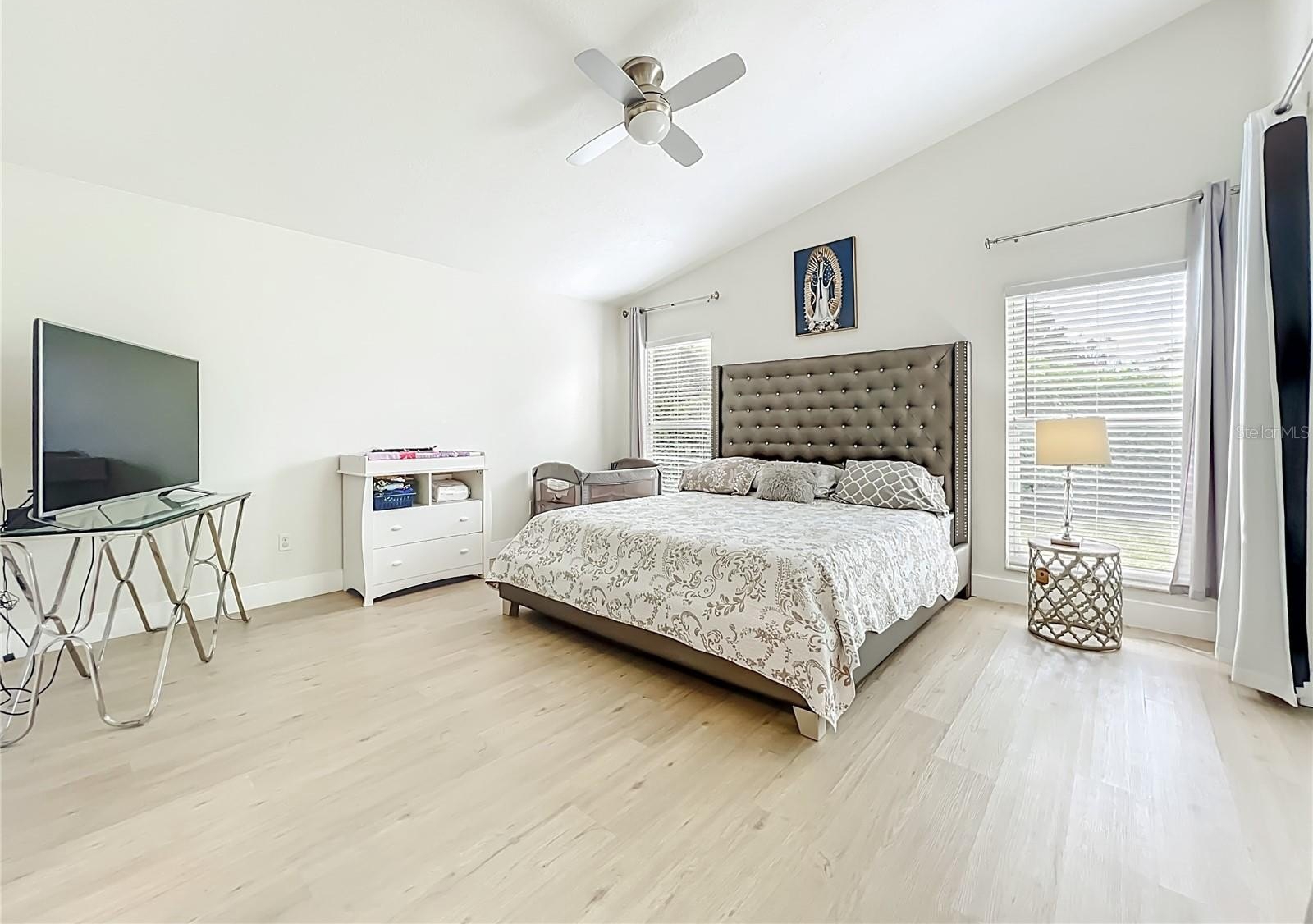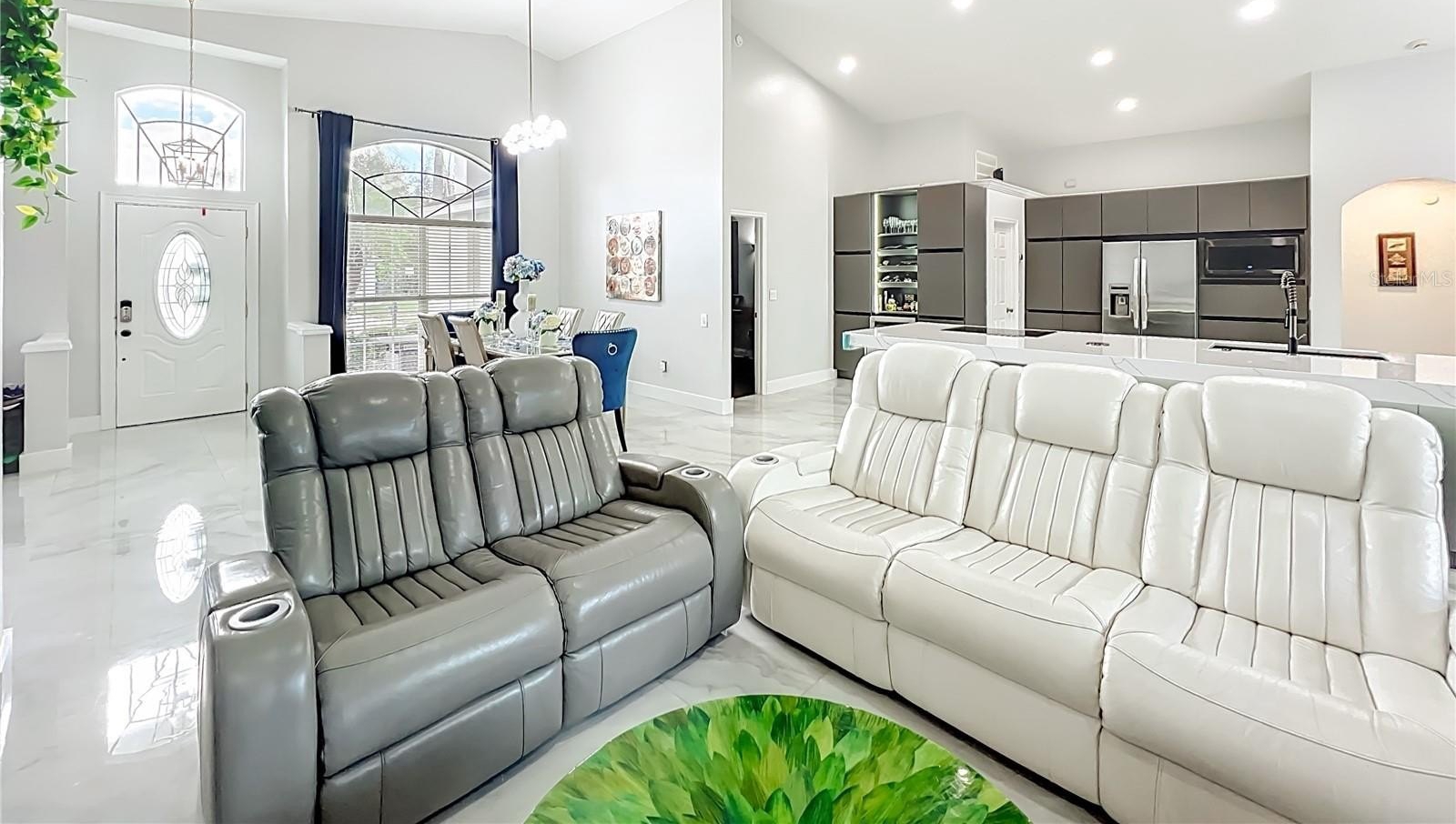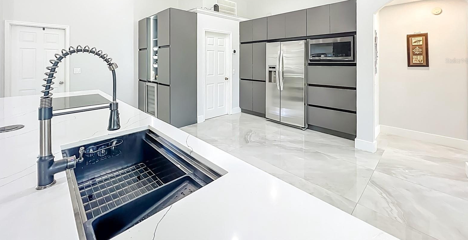One or more photo(s) has been virtually staged. Beautifully updated corner-lot home on a quiet cul-de-sac in an intimate community of just 99 homes. Features an impressive 11.5-ft quartz kitchen island, built-in stainless steel appliances, a wine fridge, and a bright open floor plan. Main living areas showcase oversized 64x38 porcelain tile, while bedrooms feature new luxury vinyl plank flooring.